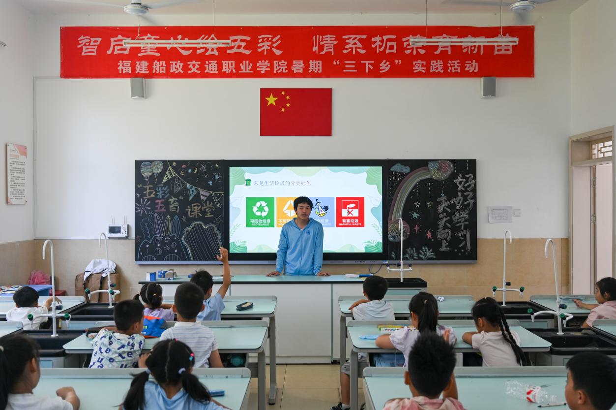 為深入學(xué)習(xí)貫徹習(xí)近平生態(tài)文明思想,深化“美麗中國·青春行動”時代內(nèi)涵。引導(dǎo)廣大青年學(xué)生深入鄉(xiāng)村廣泛開展綠色科考、文明綠色出行等實踐活動,自覺投身美麗中國建設(shè)生動實踐。2025年8月3日至8月8日,福建船政交通職業(yè)學(xué)院“五彩五育”綠色發(fā)展倡導(dǎo)團前往寧德市柘榮縣開展暑期“三下鄉(xiāng)”活動。倡導(dǎo)團成員既深入田間地頭向村民傳遞環(huán)保理念,也走進(jìn)鄉(xiāng)村學(xué)校,為孩子們帶來了一堂堂生動有趣的“綠色課堂”,用實際行動讓綠色發(fā)展的種子在鄉(xiāng)村大地生根發(fā)芽。
