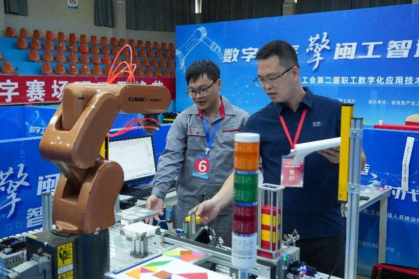 2025 年 8 月 22 日至8月25日,全國總工會(huì)第二屆職工數(shù)字化應(yīng)用技術(shù)技能大賽福建選拔賽-工業(yè)機(jī)器人系統(tǒng)運(yùn)維員賽項(xiàng)在福建船政交通職業(yè)學(xué)院成功舉行。本次大賽由全國總工會(huì)指導(dǎo),福建省總工會(huì)、福建省工信廳主辦,省信息產(chǎn)業(yè)工會(huì)、福州市總工會(huì)、福建船政交通職業(yè)學(xué)院承辦,福建(泉州)先進(jìn)制造技術(shù)研究院協(xié)辦。