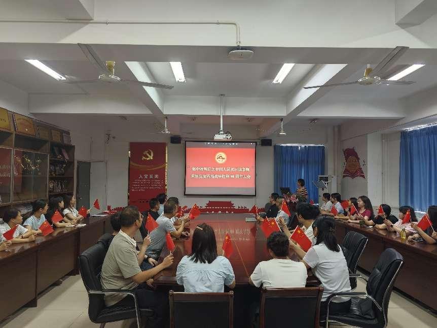 全體教職工齊聚一堂,共同守候在屏幕前。教師們認(rèn)真聆聽習(xí)近平總書記發(fā)表的重要講話,深刻領(lǐng)會(huì)講話精神?!爸腥A民族偉大復(fù)興勢不可擋!人類和平與發(fā)展的崇高事業(yè)必將勝利!”當(dāng)習(xí)近平總書記鏗鏘有力的話語傳來,會(huì)場內(nèi)響起了熱烈掌聲。