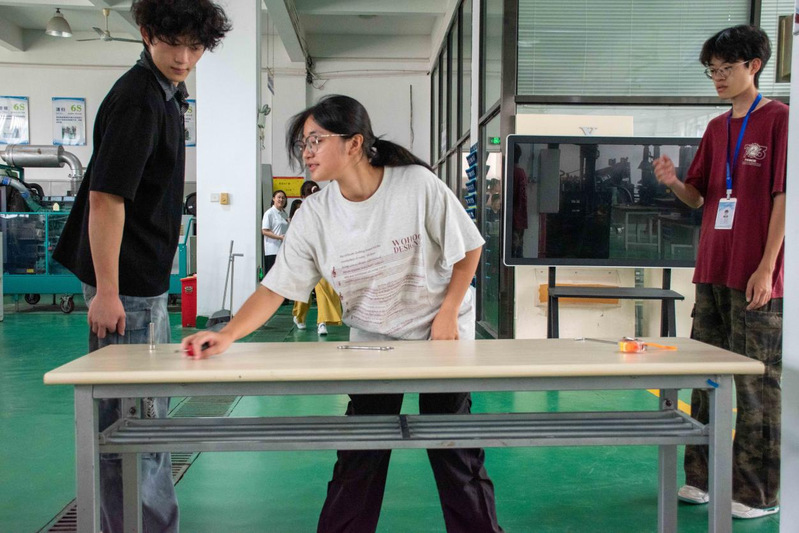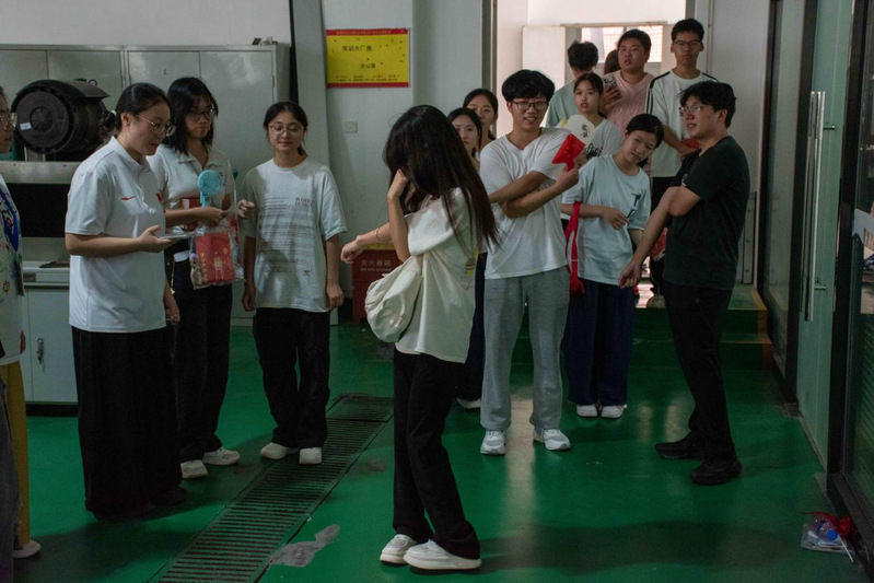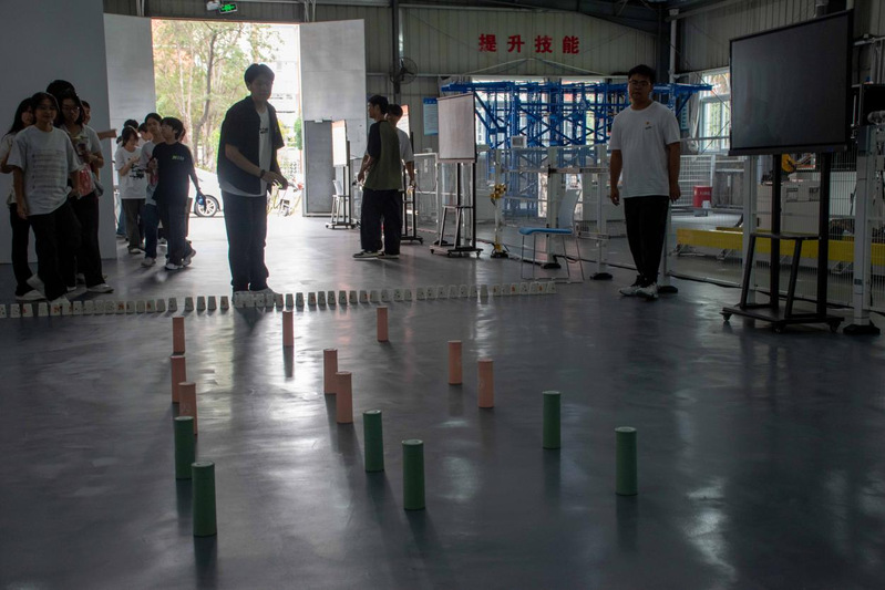 26號樓智能工程實(shí)訓(xùn)基地前,“找到真正的自己”挑戰(zhàn)現(xiàn)場人頭攢動?!按笙蟊亲愚D(zhuǎn) 5 圈”——隨著口令響起,學(xué)子們手扶立柱,在旋轉(zhuǎn)中穩(wěn)住重心;眩暈感未消,便迅速沖向機(jī)械零件擺放區(qū),爭分奪秒完成任務(wù)。40秒的限時角逐里,有人踉蹌卻不放棄,有人敏捷又從容,緊張的氛圍中滿是青春的果敢。成功通關(guān)者接過“暖心寄語”,臉上的笑容里藏著突破自我的驕傲。這個看似簡單的游戲,讓學(xué)子們在旋轉(zhuǎn)中解鎖潛藏的平衡力與專注力,每一圈轉(zhuǎn)動都是與自我的對話,每一次成功都是成長的勛章。