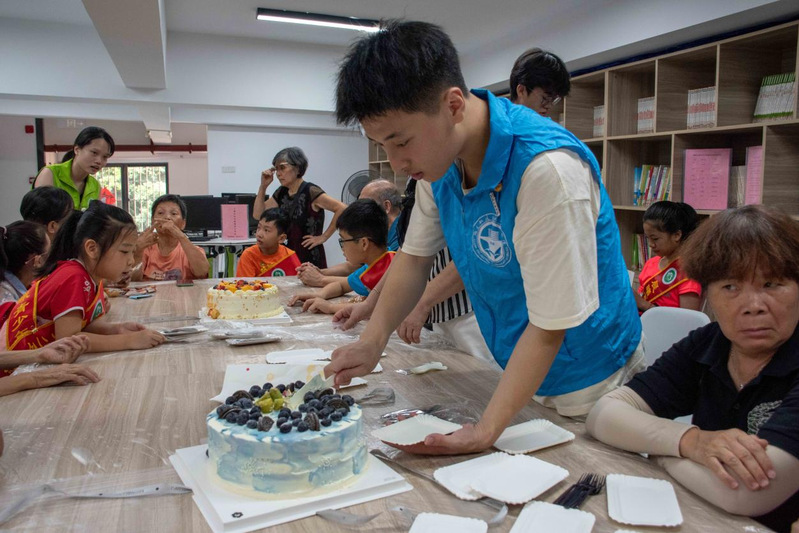 隨后,志愿者們推上精心定制的生日蛋糕,點(diǎn)燃蠟燭,全場(chǎng)齊聲高唱《生日快樂(lè)歌》。燭光搖曳中,老人們閉眼許愿,臉上洋溢著幸福的笑容。志愿者們細(xì)心地為每位老人切好蛋糕,遞上叉子,陪伴他們一同品嘗甜蜜。