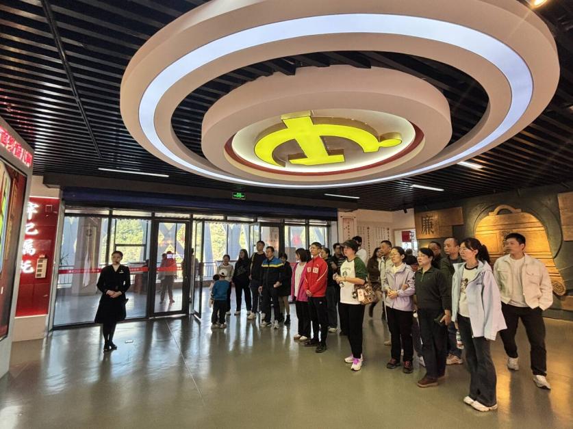 在永陽(yáng)文化中心,教職工沉浸式感受當(dāng)?shù)匚幕滋N(yùn)與紅色基因。該中心作為永泰重點(diǎn)文化設(shè)施,場(chǎng)館呈“之”字形分布象征大樟溪,寓意文化源遠(yuǎn)流長(zhǎng)。大家重點(diǎn)參觀黨員政治生活館,該館按“一廊二廳三室”布局,集多重功能于一體,通過(guò)實(shí)體與數(shù)字館結(jié)合展現(xiàn)黨的奮斗歷程與優(yōu)良作風(fēng)。教職工認(rèn)真聆聽(tīng)講解、駐足交流,在紅色教育中進(jìn)一步強(qiáng)化責(zé)任擔(dān)當(dāng)、堅(jiān)定奮進(jìn)信念。