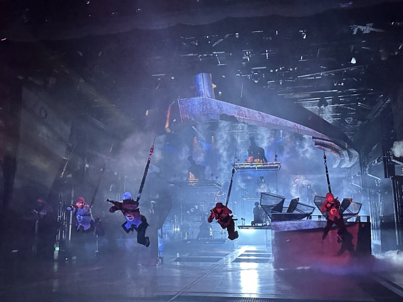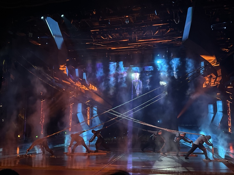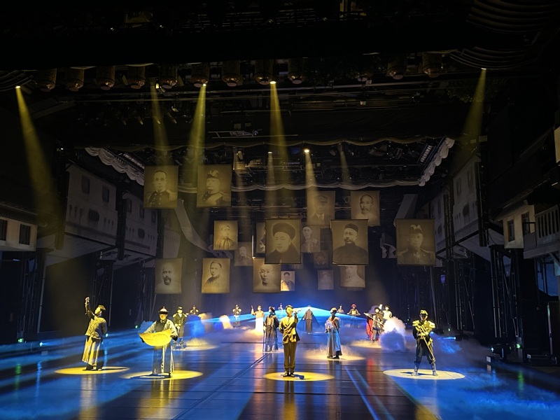 《最憶船政》以百年船政發(fā)展史為敘事核心,依托老廠房獨(dú)特空間優(yōu)勢(shì),打造出科技感十足的折疊劇場(chǎng)。在約70分鐘的演出中,可移動(dòng)的觀眾席化身為“時(shí)光之船”,載著黨員教師們沉浸式穿梭于各個(gè)歷史場(chǎng)景:船政學(xué)堂里的朗朗書聲、萬(wàn)年青號(hào)軍艦下水的震撼瞬間、甲午海戰(zhàn)的悲壯征程……聲光電技術(shù)與演員的真情演繹相互交織,讓塵封的歷史變得鮮活可感,生動(dòng)再現(xiàn)了船政先輩們實(shí)業(yè)救國(guó)、向海圖強(qiáng)的壯志豪情。