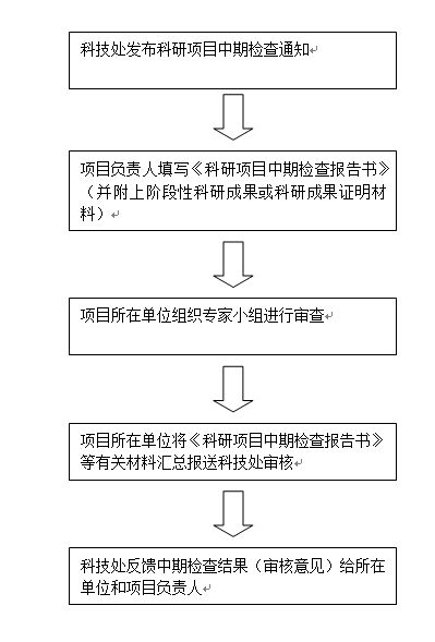 科研項(xiàng)目到期后,相關(guān)項(xiàng)目負(fù)責(zé)人向其所在單位報(bào)送項(xiàng)目結(jié)題相關(guān)材料;相關(guān)單位按要求對(duì)項(xiàng)目結(jié)題相關(guān)材料進(jìn)行審查并報(bào)送科技處;科技處對(duì)項(xiàng)目結(jié)題相關(guān)材料進(jìn)行審查并報(bào)送上級(jí)相關(guān)主管部門(mén)。
