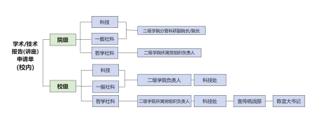 1.各教學單位應(yīng)按規(guī)定組織教職工、校外學者、專家開展學術(shù)/技術(shù)報告(講座),由主講者或者講座組織者在OA辦事大廳上填寫《學術(shù)/技術(shù)報告(講座)申請單》,按照審批流程進行審批,學術(shù)/技術(shù)報告(講座)時間在不影響正常教學的情況下,統(tǒng)一安排在每周三下午、周六和周天,講座必須在學校教室舉行,地點由各二級學院自行協(xié)調(diào)解決。