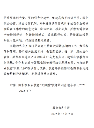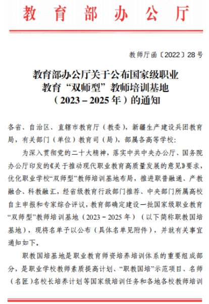 12月7日,教育部辦公廳公布國家級職業(yè)教育“雙師型”教師培訓(xùn)基地名單(2023-2025年),我校申報的交通運輸大類道路運輸中類“雙師型”教師培訓(xùn)基地成功入選國家級職業(yè)教育“雙師型”教師培訓(xùn)基地。