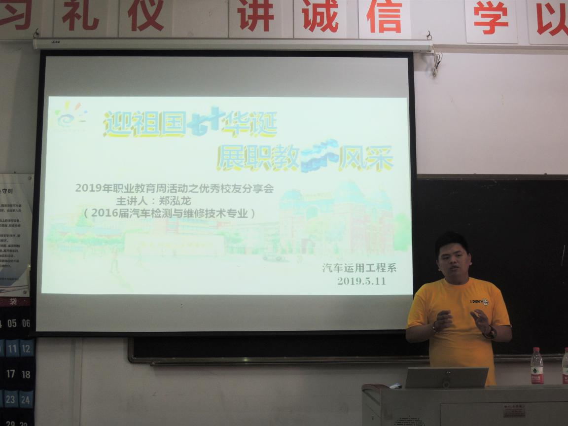 系部分別邀請了2011級汽車服務(wù)與維修專業(yè)韓彥東,2013級汽車檢測與維修技術(shù)專業(yè)鄭泓龍兩位往屆畢業(yè)班校友到校給系部在校學(xué)生做相關(guān)企業(yè)介紹、企業(yè)文化、產(chǎn)業(yè)發(fā)展前景、企業(yè)產(chǎn)品研發(fā)情況、在校生與企業(yè)進(jìn)行互通對話、增進(jìn)我系學(xué)生對行業(yè)企業(yè)發(fā)展現(xiàn)狀和趨勢的了解。