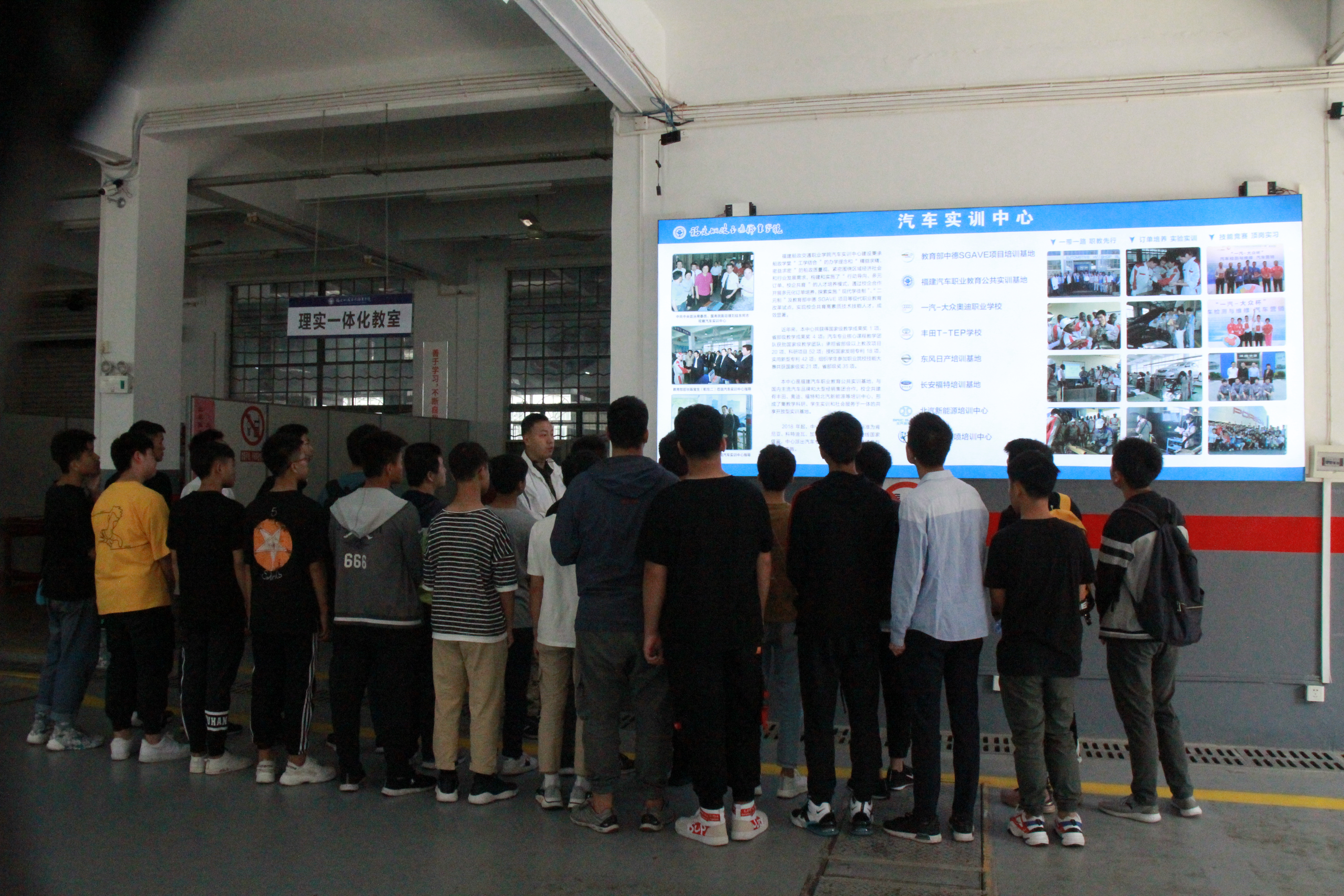 2019年5月11日,我系邀請商貿(mào)、工業(yè)、理工等三所中職學(xué)校的學(xué)生走進(jìn)校園并參觀我系實訓(xùn)室等教學(xué)基地,在學(xué)院門口通過展板宣傳及現(xiàn)場咨詢等形式向?qū)W生們充分展示汽車運用工程系教學(xué)成果、專業(yè)建設(shè)及專業(yè)育人的情況。實訓(xùn)室主任許邵炎、實訓(xùn)室老師杜盼成、鄭鵬三位老師分別北區(qū)11號樓汽車實訓(xùn)中心、26號樓豐田實訓(xùn)室、奧迪實訓(xùn)室為介紹系部實訓(xùn)室,通過互動體驗增強參觀觀摩的師生對職業(yè)教育以及我系教學(xué)的了解,為學(xué)院招生做好宣傳活動。