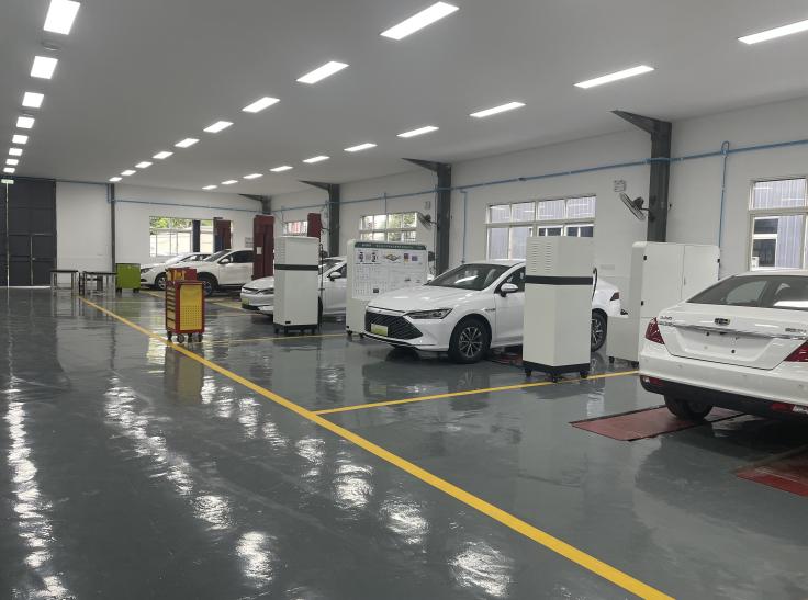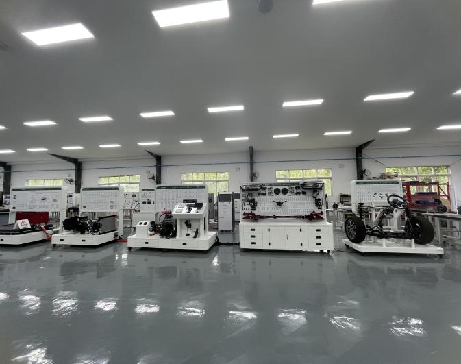 項(xiàng)目建設(shè)面積:800㎡(包含教室),工位:30個(gè)。設(shè)備主要包括:比亞迪混合動(dòng)力整車(chē)檢測(cè)平臺(tái)、混合動(dòng)力汽車(chē)整車(chē)控制系統(tǒng)檢測(cè)平臺(tái)、混合動(dòng)力汽車(chē)電池管理系統(tǒng)檢測(cè)平臺(tái)、混合動(dòng)力整車(chē)訓(xùn)練平臺(tái)、比亞迪純電動(dòng)汽車(chē)動(dòng)力系統(tǒng)實(shí)訓(xùn)平臺(tái)、純電動(dòng)汽車(chē)動(dòng)力電池實(shí)訓(xùn)平臺(tái)、純電動(dòng)整車(chē)交互檢測(cè)平臺(tái)、整車(chē)加載運(yùn)行測(cè)試系統(tǒng)、電池及BMS管理系統(tǒng)裝調(diào)臺(tái)架、驅(qū)動(dòng)電機(jī)裝調(diào)臺(tái)架等設(shè)備。該實(shí)訓(xùn)室為“比亞迪新能源汽車(chē)技術(shù)技能人才培養(yǎng)基地”,開(kāi)展比亞迪訂單班培養(yǎng)和實(shí)踐教學(xué),為比亞迪企業(yè)開(kāi)展技術(shù)培訓(xùn)和鑒定,如下圖。
