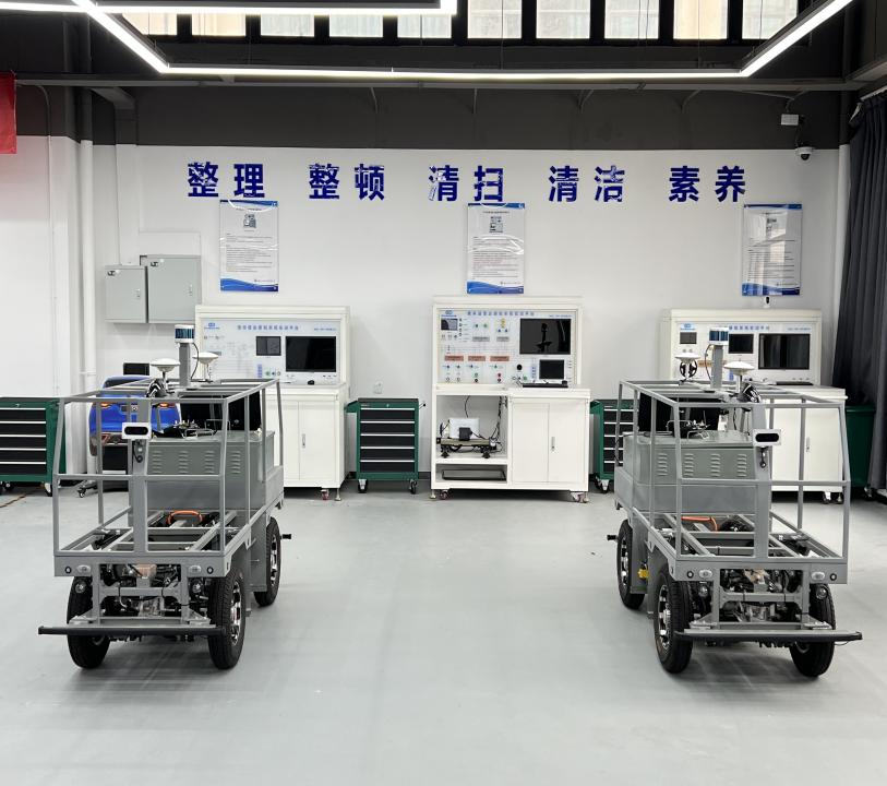 智能網(wǎng)聯(lián)汽車(chē)實(shí)訓(xùn)中心于2021年建成,是全國(guó)首個(gè)授牌的智能網(wǎng)聯(lián)汽車(chē)1+X證書(shū)省級(jí)考核站點(diǎn),同時(shí)也是金龍智能網(wǎng)聯(lián)汽車(chē)創(chuàng)新中心,及深圳柯柏文、上海商湯科技聯(lián)合授牌的綜合實(shí)訓(xùn)基地。按照“汽車(chē)智能技術(shù)專(zhuān)業(yè)人才培養(yǎng)目標(biāo)”,該專(zhuān)業(yè)是培養(yǎng)具備研發(fā)、集成、測(cè)試、運(yùn)營(yíng)、維護(hù)、服務(wù)、數(shù)據(jù)采集等崗位能力的相關(guān)工程技術(shù)人員。本中心占地400m2.已投資500萬(wàn)元。