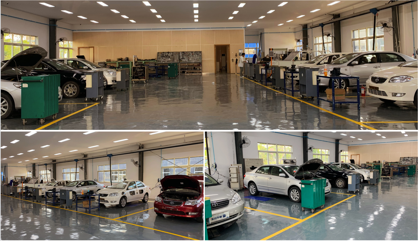 是2005年學(xué)院與豐田汽車(chē)公司合作校企共建的校內(nèi)培訓(xùn)基地,面積600平米,包含整車(chē)工位8個(gè)、發(fā)動(dòng)機(jī)拆裝檢測(cè)工位4個(gè),擁有豐田各款式實(shí)訓(xùn)整車(chē)13輛,發(fā)動(dòng)機(jī)總成4臺(tái),變速器總成8臺(tái),發(fā)動(dòng)機(jī)電控臺(tái)架2套,雷克薩斯燈光臺(tái)架1套,各系統(tǒng)解剖件十余個(gè),專(zhuān)用工具等。設(shè)備總值500萬(wàn)元。該實(shí)訓(xùn)室能對(duì)外開(kāi)展汽車(chē)維修工國(guó)家職業(yè)技能等級(jí)培訓(xùn)、考證,以及實(shí)踐教學(xué),技能鑒定與技術(shù)服務(wù)等功能,如下圖所示。