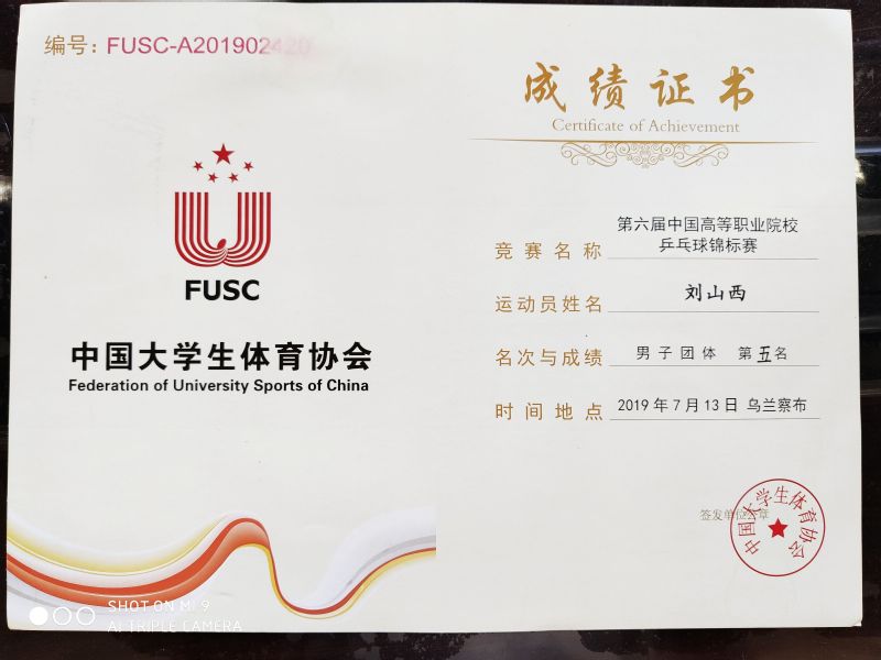2019年7月10日至13日,我系2018級汽車營銷與服務(wù)1班學(xué)生姚華驊、2017級汽車運用與維修技術(shù)1班劉山西等同學(xué),在內(nèi)蒙古烏蘭察布職業(yè)學(xué)院舉行的第六屆中國高職院校乒乓球錦標(biāo)賽中,通過與全國33所院校近180名運動員的激烈角逐,最終獲得全國男子團(tuán)體第五名的歷史最好成績。