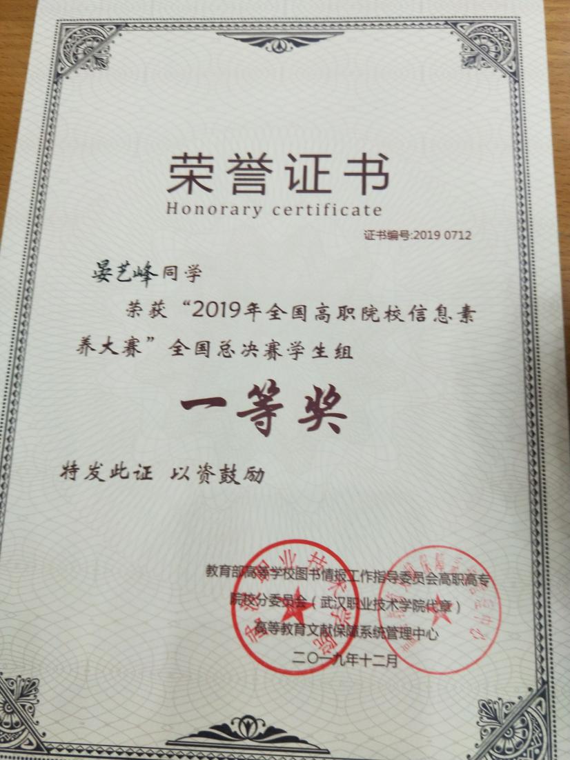 2019年12月3日-5日,我系晏藝峰同學(xué)參加在深圳舉辦的首屆全國(guó)高職院校信息素養(yǎng)大賽全國(guó)總決賽,憑借扎實(shí)的理論知識(shí)、過(guò)硬的訓(xùn)練功底以及良好的心理素質(zhì),不懼強(qiáng)手、沉著應(yīng)對(duì),在100位選手中脫穎而出,斬獲總決賽學(xué)生組一等獎(jiǎng),盡顯汽車運(yùn)用工程系學(xué)子的自信與風(fēng)采。