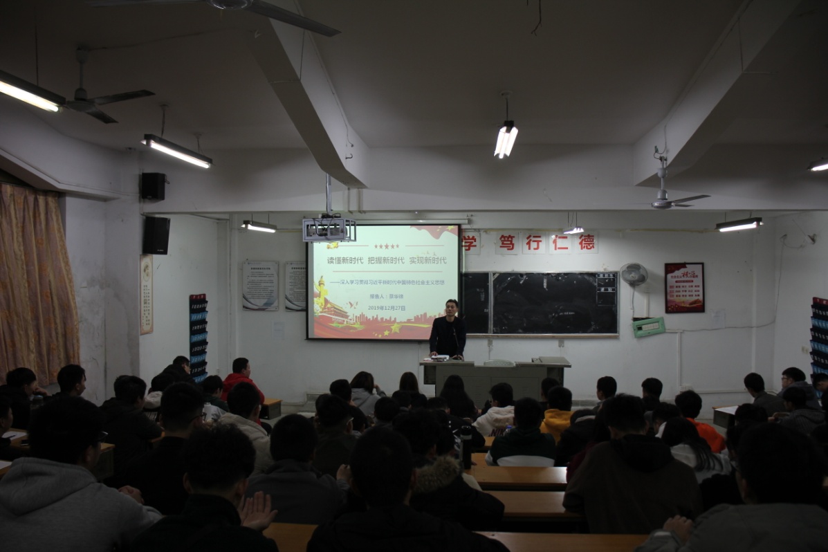 2019年12月27日,汽車運用工程系在一階教室舉辦了“形勢與政策”課“讀懂新時代 、把握新時代、 實現(xiàn)新時代”專題講座。講座由汽車運用工程系黨總支書記蔡華錦主講,100名學生參加了講座。