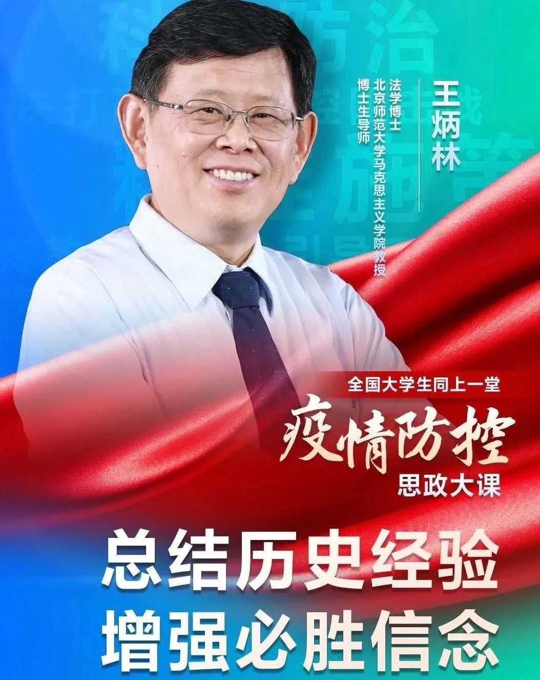 本次“思政大課”特別邀請艾四林,秦宣,王炳林,馮秀軍四位教授,結(jié)合“馬克思主義基本原理概論”“毛澤東思想和中國特色社會主義理論體系概論”“中國近代史綱要”“思想道德與法律基礎(chǔ)”四門必修課教學內(nèi)容,為我們規(guī)劃黨中央對疫情防控的戰(zhàn)略部署,分析中國共產(chǎn)黨領(lǐng)導和中國特色社會主義制度的顯著優(yōu)勢,暢敘祖國悠久歷史,講述疫情期間感人肺腑的故事。