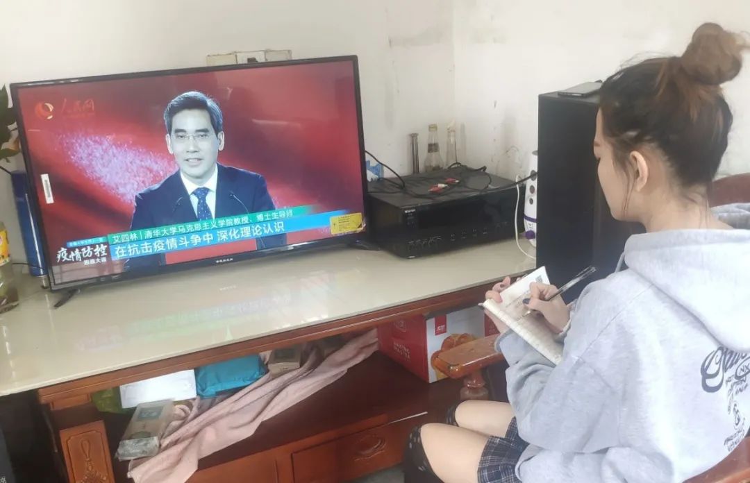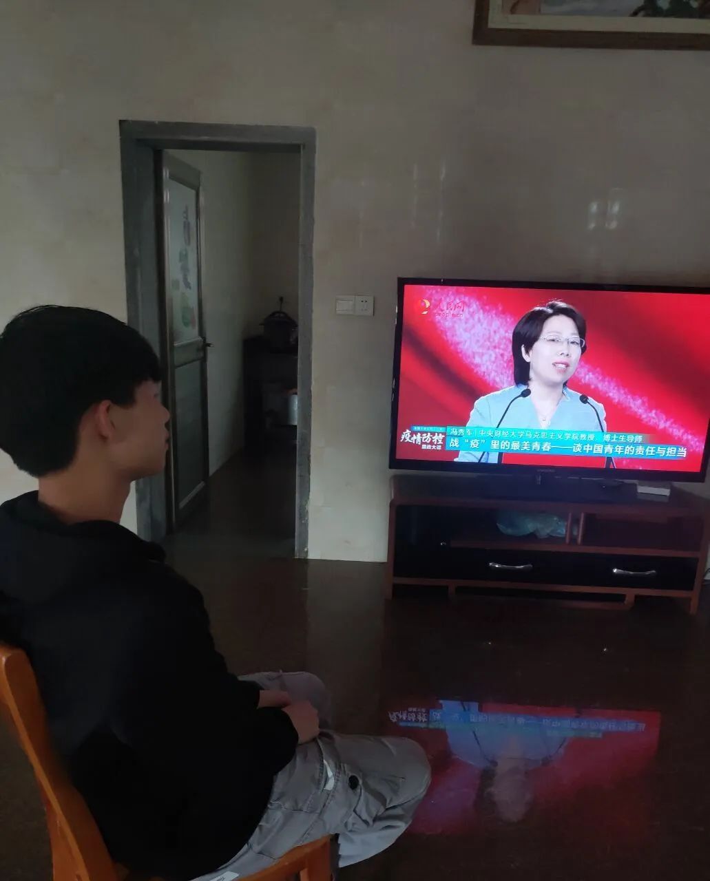 面對“防控思政大課”,同學們絲毫沒有松懈,聚精會神的看著直播,從他們的眼神中可以看出那團熊熊烈火,以及那份堅定的信念。
