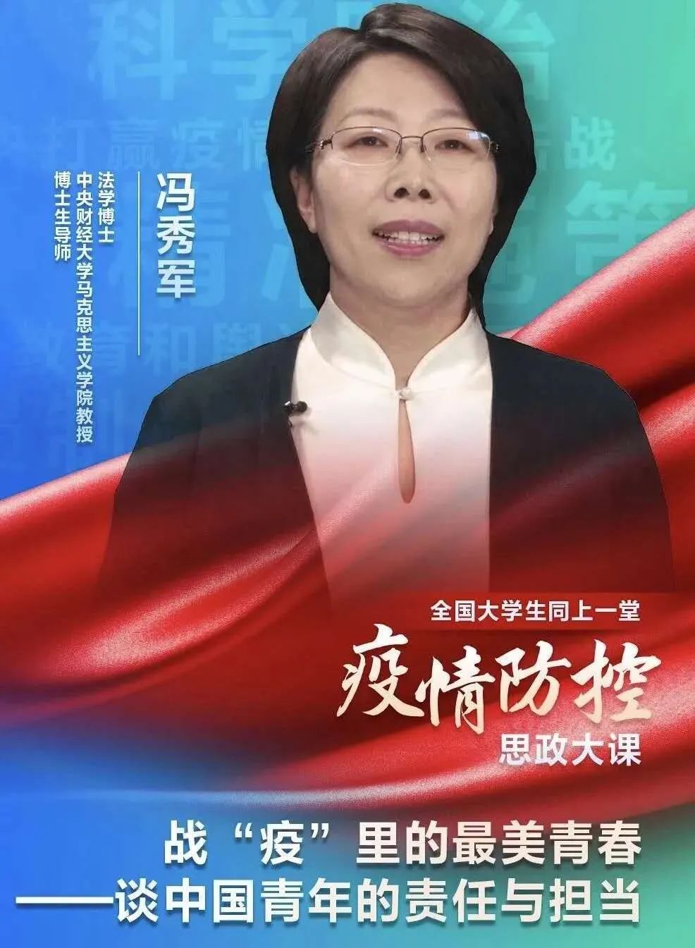 馮秀軍教授從“戰(zhàn)“疫”中最美的青春”中為我們深情講述疫情中的最美逆行者,領(lǐng)導我們擔當國家使命和責任,延續(xù)每一代自強不息的薪火。