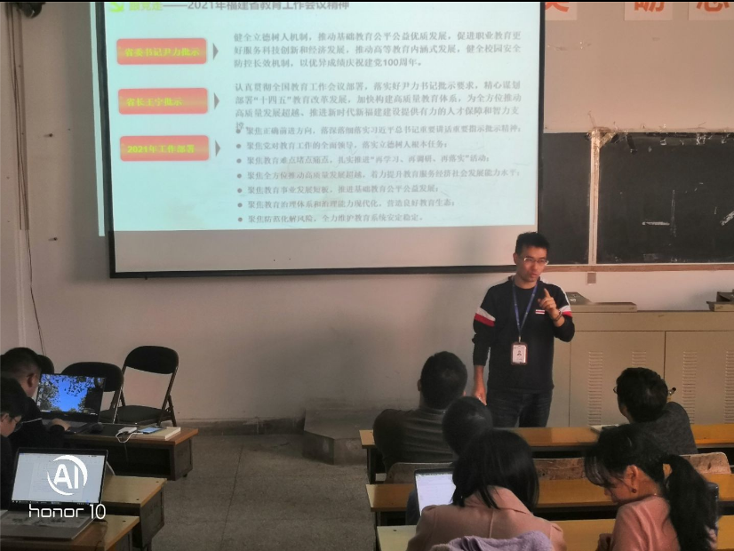 最后支部書記朱劍寶同志總結(jié)了2021年福建省教育工作會議精神和2021年全國兩會精神。
