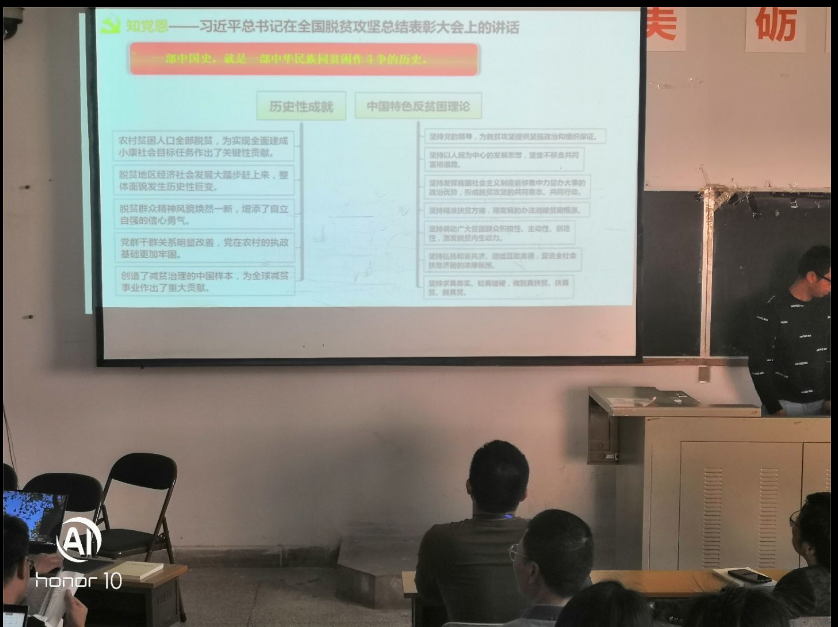 此次研討會的召開讓我們充分認識到學習、思考、總結(jié)、借鑒、運用黨史知識、經(jīng)驗,這不僅是解決牢固樹立正確世界觀的問題,也是為黨育人,為國育材,立德樹人的根本任務(wù)。大家一致表示要把黨史學習擺上重要議事日程,認真貫徹落實中央關(guān)于黨史學習工作的指示精神,明確教師的職責使命,不忘初心,砥礪前行,獻禮建黨100周年。