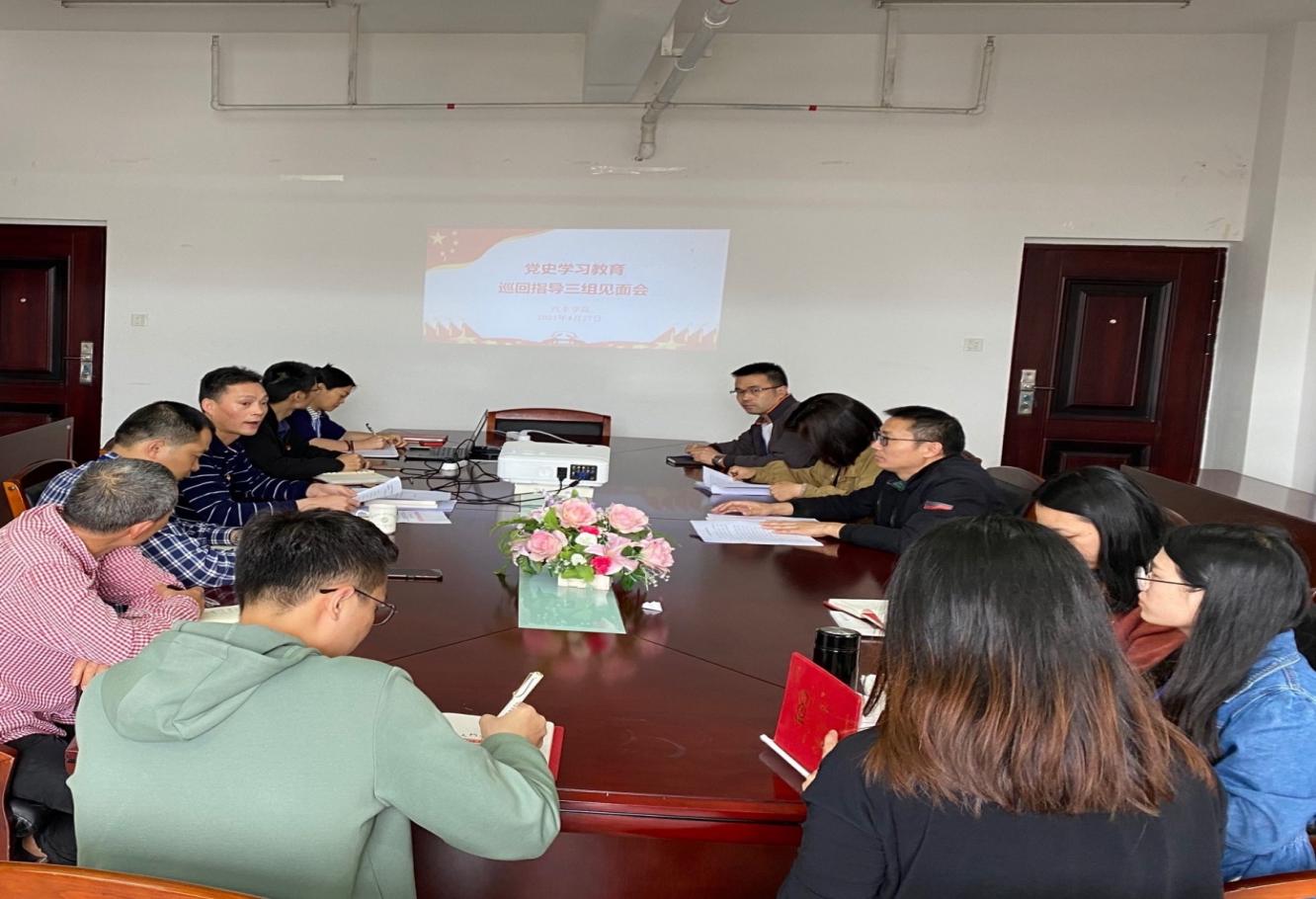 4月28日下午,福建船政交通職業(yè)學院黨史學習教育巡回指導三組一行二人,蒞臨汽車學院調(diào)研指導工作,并在汽車學院9樓會議室召開見面會。汽車學院黨政負責人、副科級以上干部、黨總支委員、各黨支部委員參加會議。