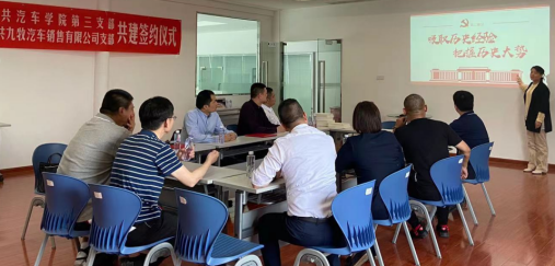 隨后學(xué)院第三黨支部和企業(yè)黨支部互相贈送黨員學(xué)習(xí)教材;并由第三黨支部副書記為企業(yè)黨員們上了一堂《學(xué)好四史 牢記初心使命》的黨課,引導(dǎo)現(xiàn)場黨員不忘記初心使命,朝著學(xué)史明理、學(xué)史增信、學(xué)史崇德、學(xué)史力行等方向前進(jìn)。
