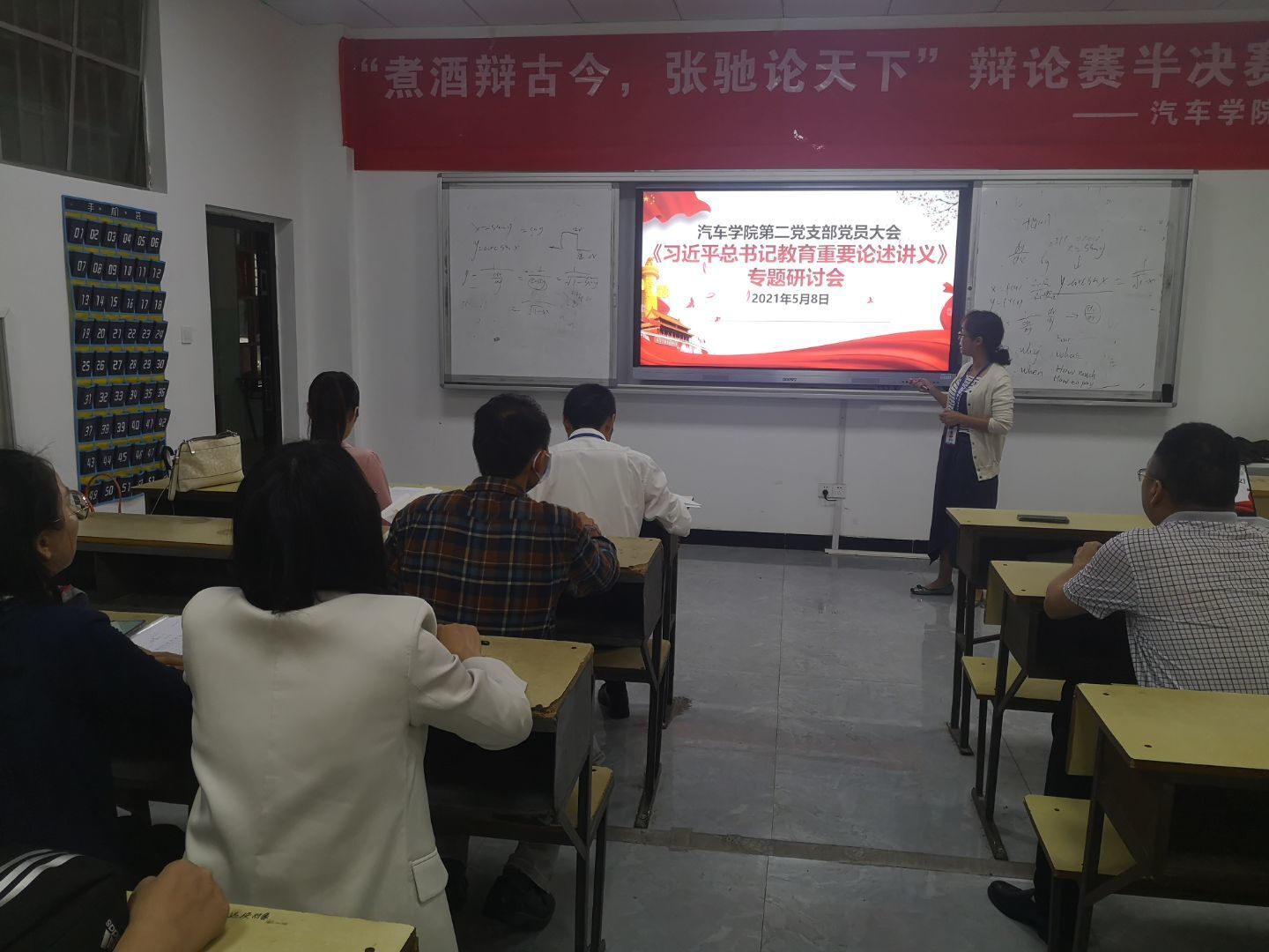 5月8日,汽車學(xué)院第二黨支部舉辦“重溫習(xí)近平總書記對(duì)教師說(shuō)的暖心話,把握新時(shí)代教育工作要點(diǎn)” 集中學(xué)習(xí)《習(xí)近平總書記教育重要論述講義》專題研討會(huì)。