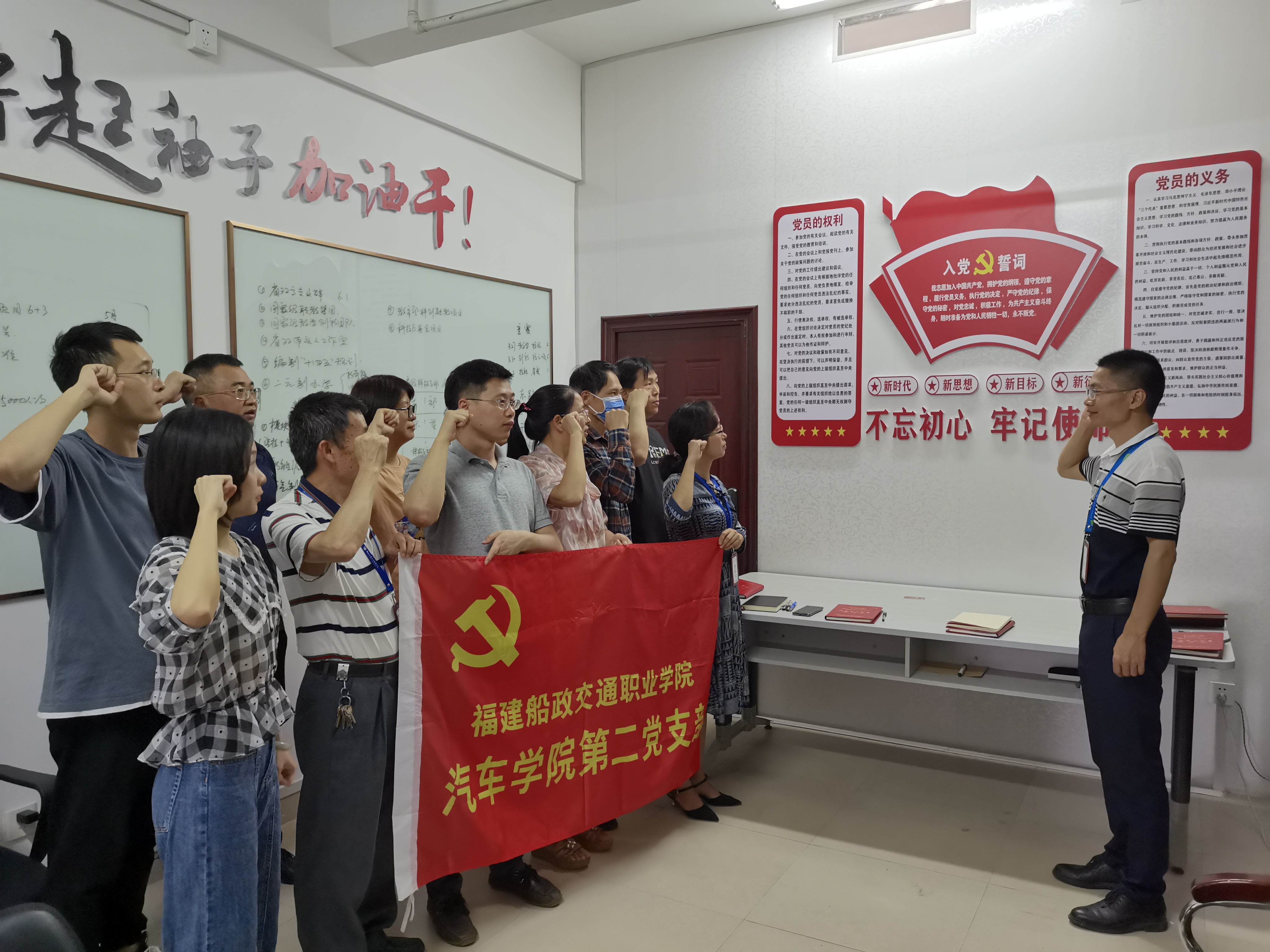 站在“兩個一百年”的歷史交匯點,開啟全面建設(shè)社會主義現(xiàn)代化國家新征程,向第二個百年奮斗目標(biāo)進(jìn)軍,正需要全體黨員大力發(fā)揚孺子牛、拓荒牛、老黃牛精神,為民服務(wù)。“面對黨旗莊嚴(yán)宣誓,這是我們向黨作出的莊嚴(yán)承諾,是需要我們用一生去踐行的錚錚誓言。”黨員們表示,不忘初心、牢記使命不是一陣子的事,而是一輩子的事;在組織上入黨,更要在思想上入黨,做到始終聽黨話、跟黨走,增強(qiáng)“四個意識”、堅定“四個自信”、做到“兩個維護(hù)”,把對馬克思主義的信仰,對中國特色社會主義的信念,對實現(xiàn)中華民族偉大復(fù)興中國夢的信心,融入到黨的各項事業(yè)之中,同時間賽跑,同歷史并進(jìn),在新時代創(chuàng)造新的歷史輝煌。