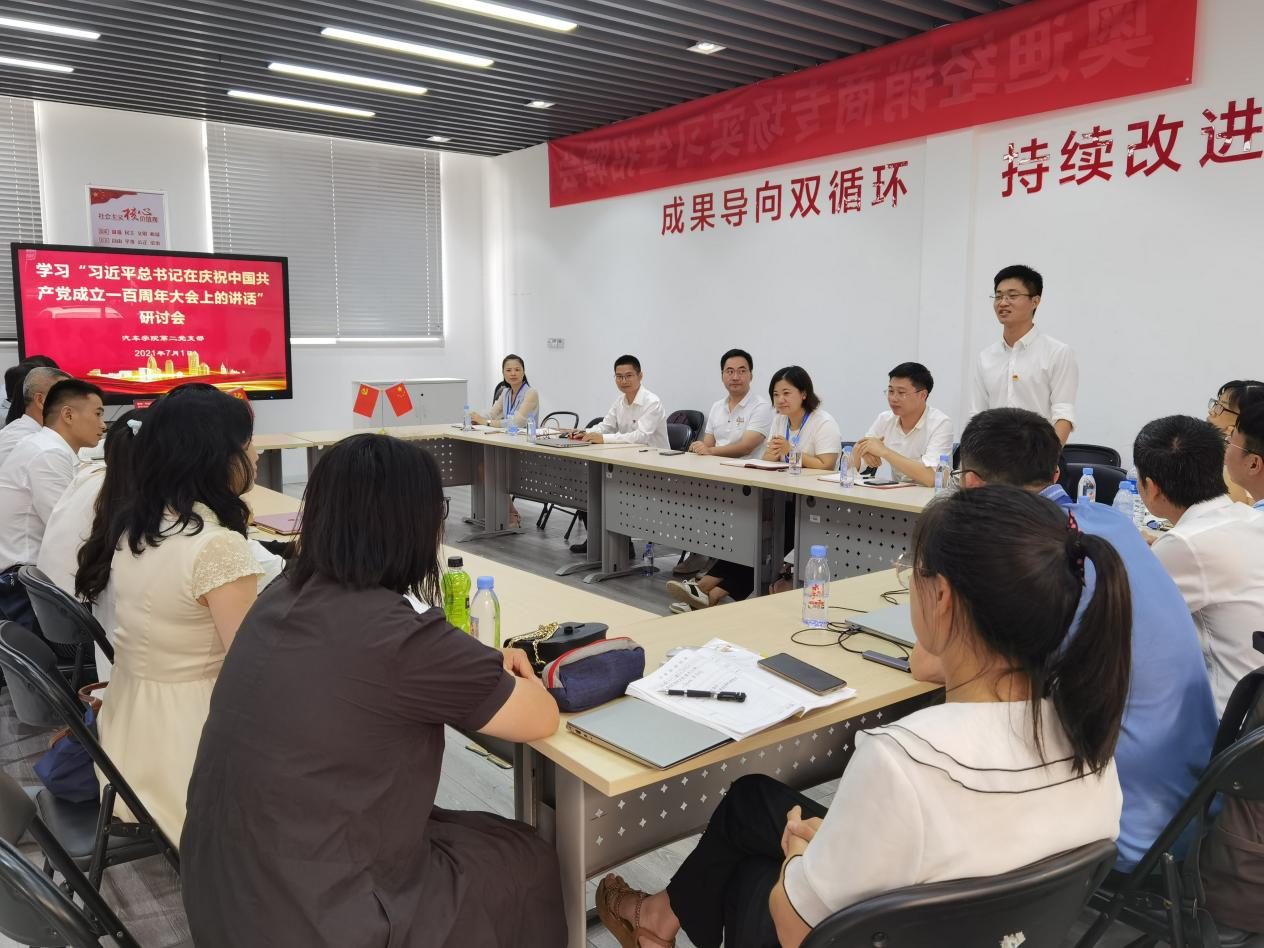 7月1日下午,汽車學(xué)院第二黨支部及汽車服務(wù)教研室、汽車新能源技術(shù)教研室、實(shí)訓(xùn)室的全體教師,在奧迪培訓(xùn)中心開展了學(xué)習(xí)“習(xí)近平總書記在慶祝中國共產(chǎn)黨成立一百周年大會上的重要講話”研討會。會上,第二黨支部書記蘇慶列帶領(lǐng)全體同志學(xué)習(xí)了“習(xí)近平總書記在慶祝中國共產(chǎn)黨成立100周年大會上的重要講話”,梳理了總書記講話中的金句。與會同志紛紛對習(xí)近平總書記的講話內(nèi)容發(fā)表了學(xué)習(xí)心得。