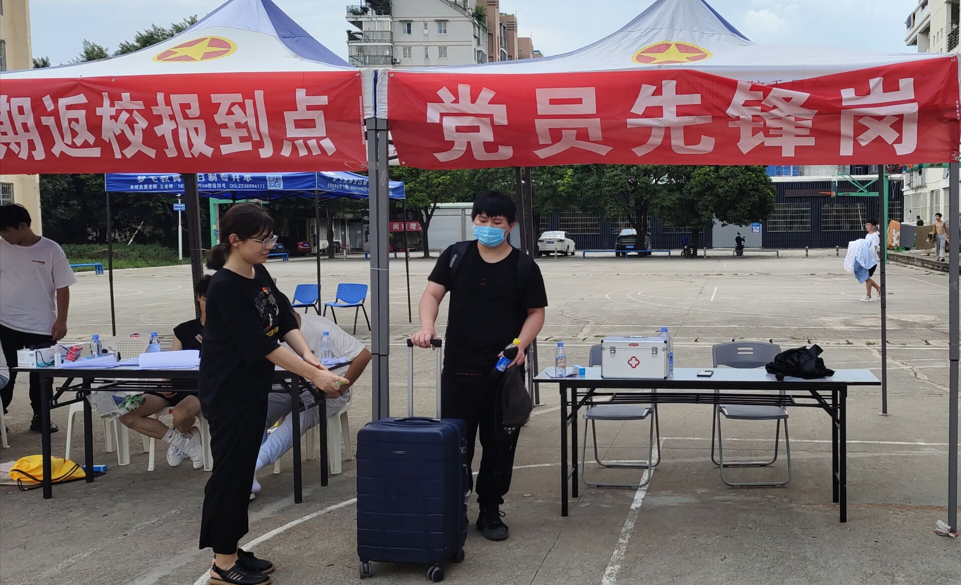 汽車學(xué)院“學(xué)生黨員先鋒崗”成員為2019級(jí)學(xué)生黨員,他們于8月9日上午正式上崗,棚內(nèi)的黨員志愿者們?yōu)殛懤m(xù)到校的同學(xué)進(jìn)行開學(xué)登記、審核綠色通行碼和健康碼,并且對(duì)返校學(xué)生手機(jī)操作過程中的疑問進(jìn)行講解和協(xié)助解決,確保所有同學(xué)順利完成返校手續(xù)。同時(shí),還有一些志愿者來回地為學(xué)子們拖運(yùn)行李,一切工作都在有序進(jìn)行著。