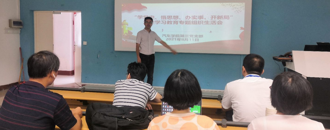 2021年8月11日,汽車學院第三黨支部根據(jù)上級黨組織通知要求,圍繞“學黨史、悟思想、辦實事、開新局”主題,認真貫徹“學史明理、學史增信、學史崇德、學史力行”要求,組織三支部全體黨員召開黨史學習教育專題組織生活會。