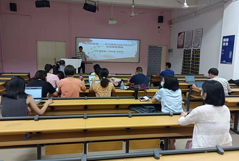 9月22日,汽車學院第二黨支部書記蘇慶列圍繞《習近平總書記“七一”重要講話精神》講授專題黨課,支部全體黨員干部聆聽報告。