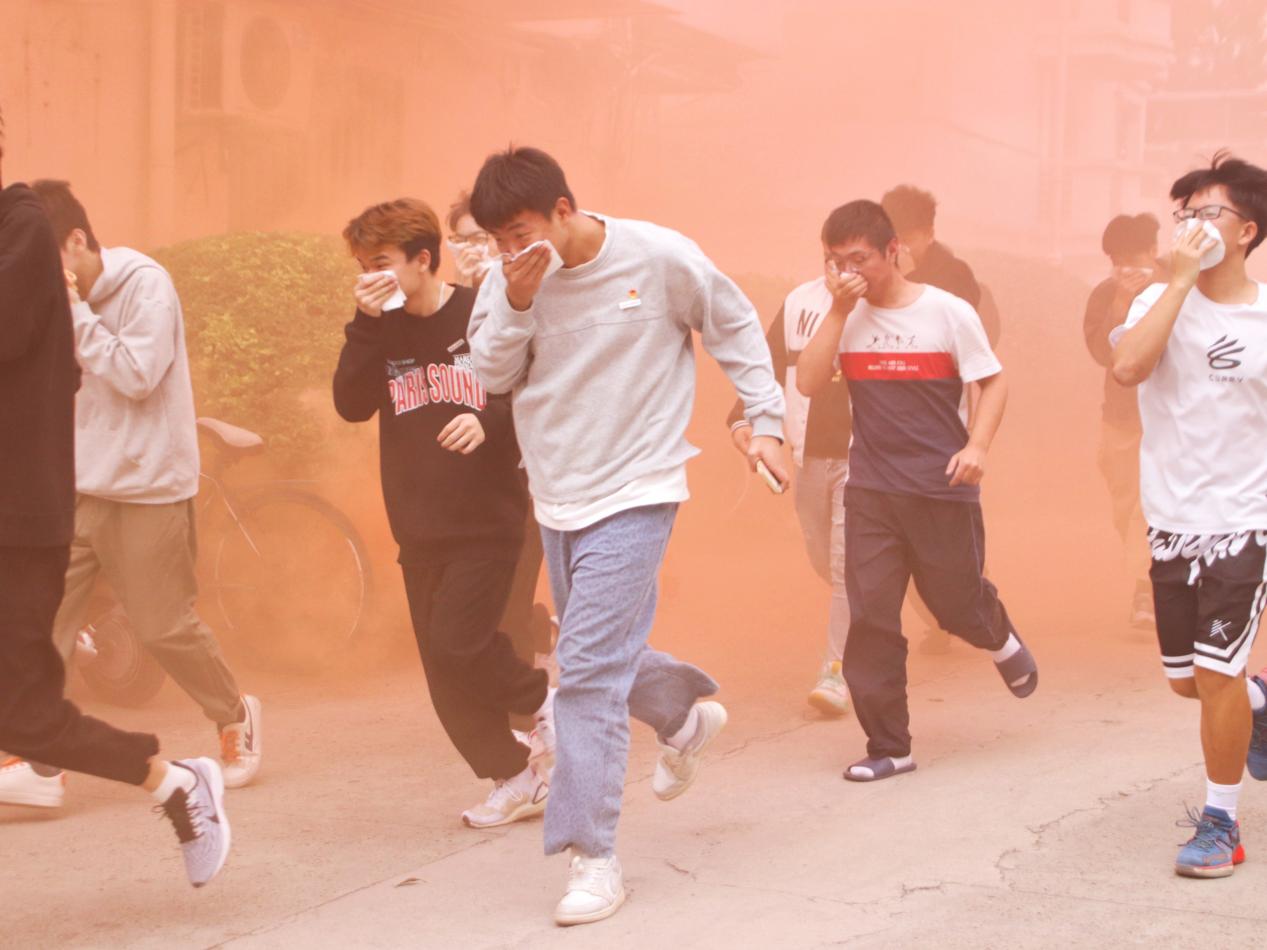 在北區(qū)24號(hào)汽車學(xué)院學(xué)生宿舍樓,一陣急促的火情報(bào)警鈴響起,汽車學(xué)院學(xué)生在志愿者的引導(dǎo)下,彎著腰,用濕手帕、濕毛巾等捂住口鼻,沿著疏散通道快速撤離到指定的安全區(qū)域,同學(xué)們迅速整隊(duì)并核查人數(shù),整個(gè)應(yīng)急演練活動(dòng)有序、緊張、安全、高效,達(dá)到了預(yù)期效果。