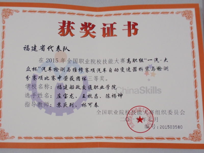 2015汽檢國(guó)賽 三等獎(jiǎng)