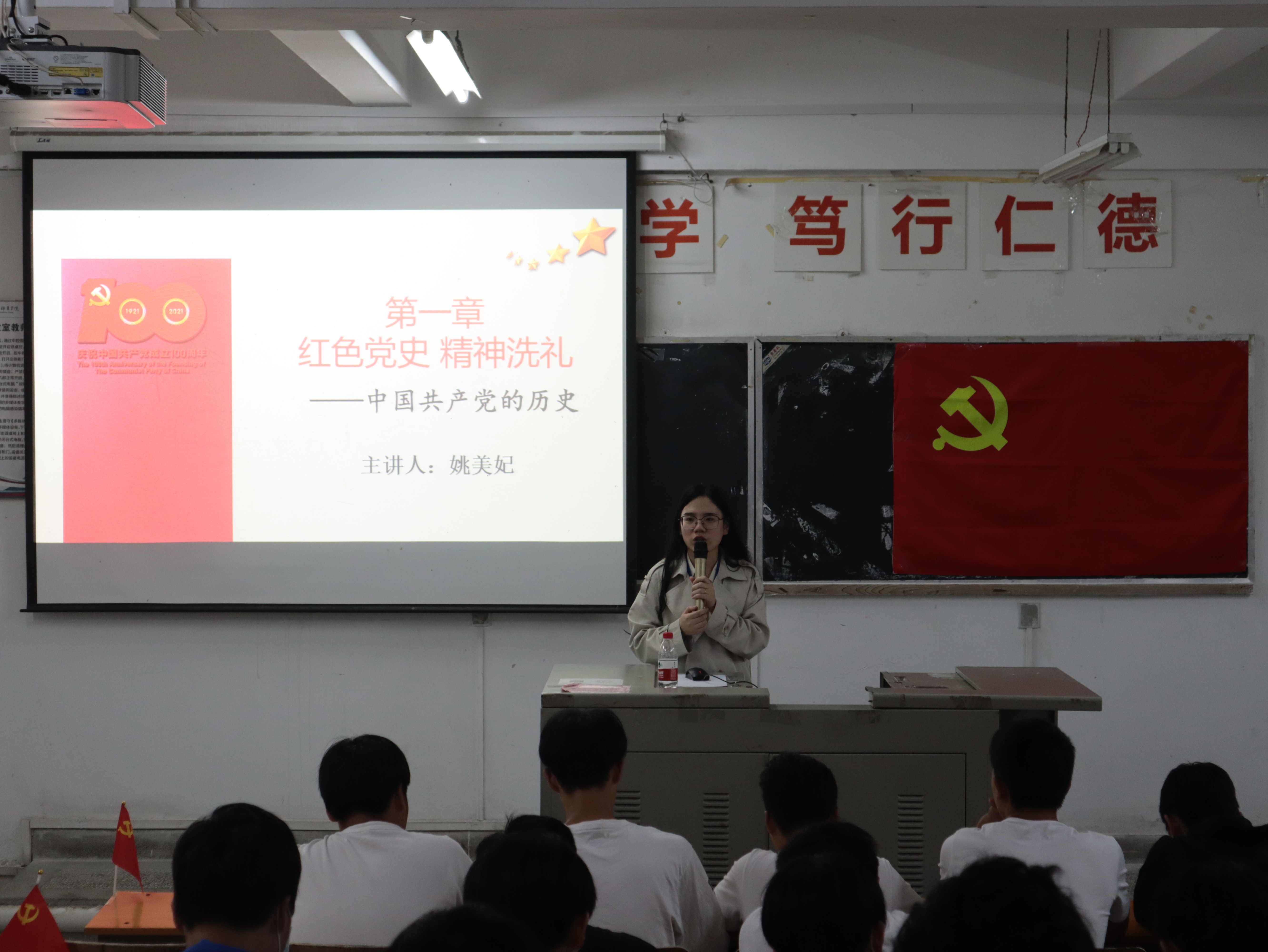 為了進(jìn)一步提高入黨積極分子黨性修養(yǎng),引導(dǎo)積極分子們不忘初心、牢記使命,勇做奮進(jìn)的弄潮兒。2022年5月23日,汽車學(xué)院第一黨支部書記姚美妃在北區(qū)22樓第一階梯教室為2021級(jí)第一批入黨積極分子上黨課,姚美妃老師此次上課的主題為《紅色黨史,精神洗禮——中國(guó)共產(chǎn)黨的歷史》。