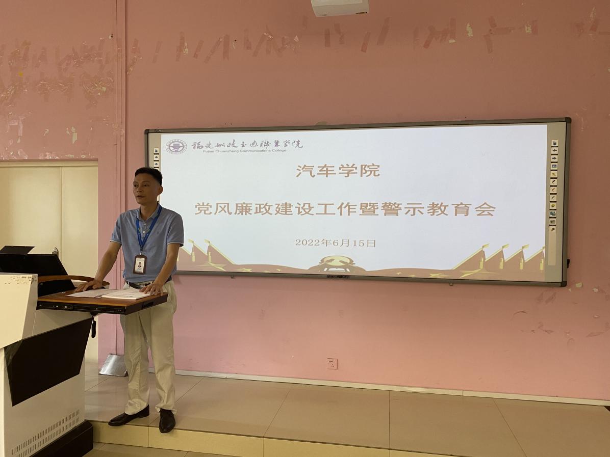 2022年6月15日下午,汽車學(xué)院召開2022年黨風(fēng)廉政建設(shè)工作部署暨警示教育會,汽車學(xué)院黨政班子、全體黨員干部、教職工參加了會議。