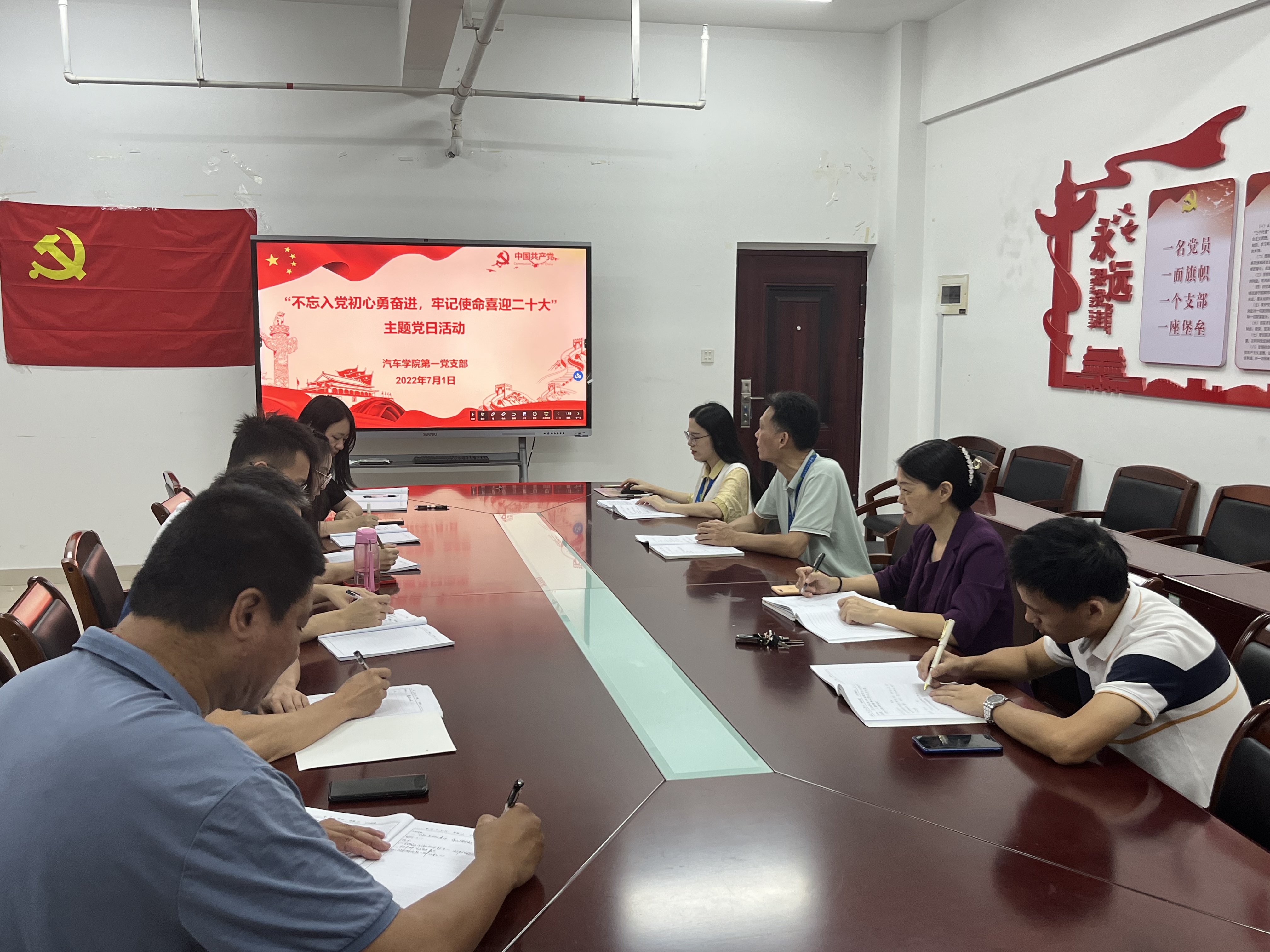 為慶祝中國共產(chǎn)黨成立101周年,迎接黨的二十大勝利召開,進(jìn)一步教育引導(dǎo)黨員深入學(xué)習(xí)習(xí)近平新時(shí)代中國特色社會(huì)主義思想,2022年7月1日,汽車學(xué)院第一黨支部組織開展“不忘入黨初心勇奮進(jìn),牢記使命喜迎黨的二十大”主題黨日活動(dòng),支部同過“政治生日”活動(dòng)。