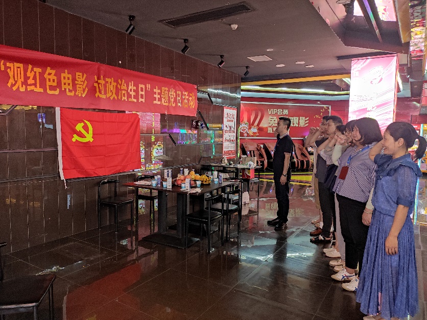 上午,汽車學(xué)院第三黨支部全體黨員在首山路觀者影城歡聚一堂,開(kāi)展了“觀紅色電影 過(guò)政治生日”主題黨日活動(dòng)。在鮮紅的黨旗下,全體黨員佩戴黨員徽章,舉起右手,握緊拳頭,由汽車學(xué)院第三黨支部書(shū)記朱劍寶領(lǐng)誓,重溫入黨誓詞。