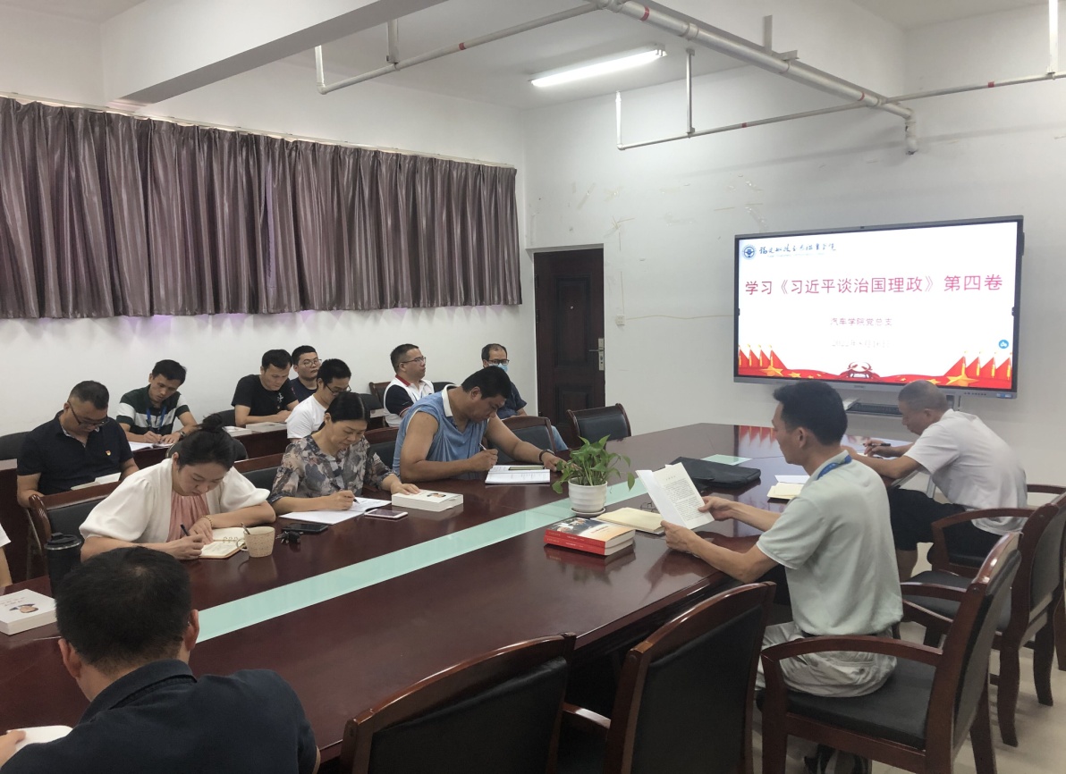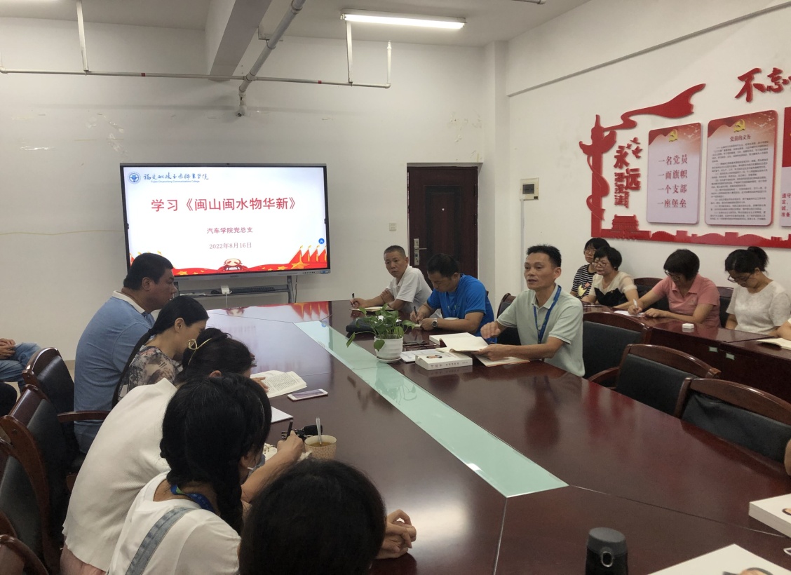 為進一步加深對習近平新時代中國特色社會主義思想的理解和認識,統(tǒng)籌抓好學院各項工作落實,汽車學院于2022年8月16日上午在圖書館9樓會議室組織全體教師學習《閩山閩水物華新》和《習近平談治國理政》第四卷,全體教職工參加會議,會議由蔡華錦書記主持。