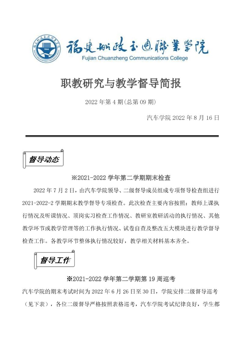 2021-2022-2學(xué)期汽車學(xué)院教學(xué)督導(dǎo)簡報(bào)第3期