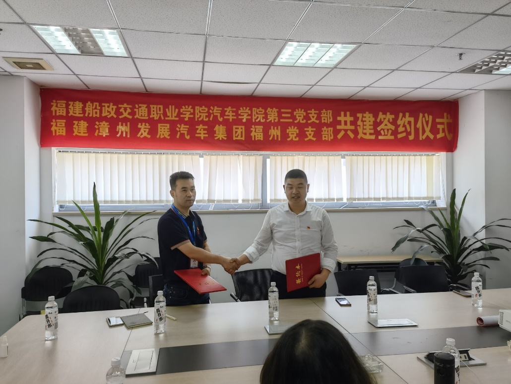 為慶祝中國共產(chǎn)黨成立101周年,迎接黨的二十大勝利召開,2022年6月23日,汽車學(xué)院第三黨支部與中共福建漳州發(fā)展汽車集團(tuán)福州支部積極開展校企支部共建,促進(jìn)與企業(yè)支部在教學(xué)、科研、大賽、服務(wù)等方面的深度合作,培養(yǎng)高素質(zhì)技術(shù)技能型人才。