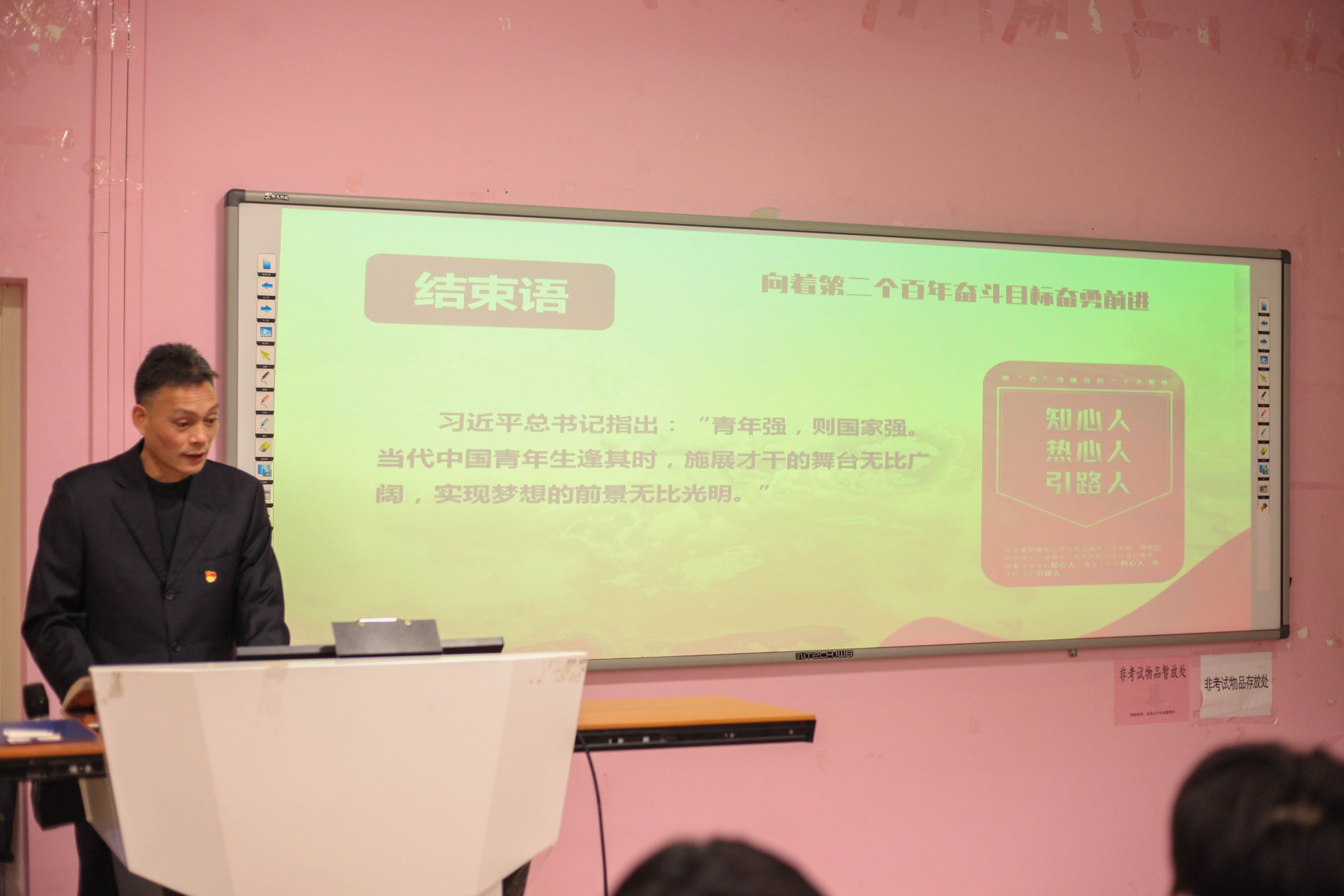 蔡華錦書記從“黨的二十大主題:大會內(nèi)容和精神的高度概括”、“過去5年的工作和新時代10年的偉大變革”、“開辟馬克思主義中國化時代化新境界”、“以中國式現(xiàn)代化全面推進中華民族偉大復興”、“黨和國家事業(yè)的新部署新要求”、“堅定不移推進全面從嚴治黨的部署和要求”、“努力推動職業(yè)教育高質(zhì)量發(fā)展的若干思考”七個方面展開宣講。引導青年學生們對中國式現(xiàn)代化知其然、知其所以然,弘揚偉大建黨精神,自信自強、守正創(chuàng)新,踔厲奮發(fā),勇毅前行,以更飽滿的精神面貌貢獻自己的青春力量。