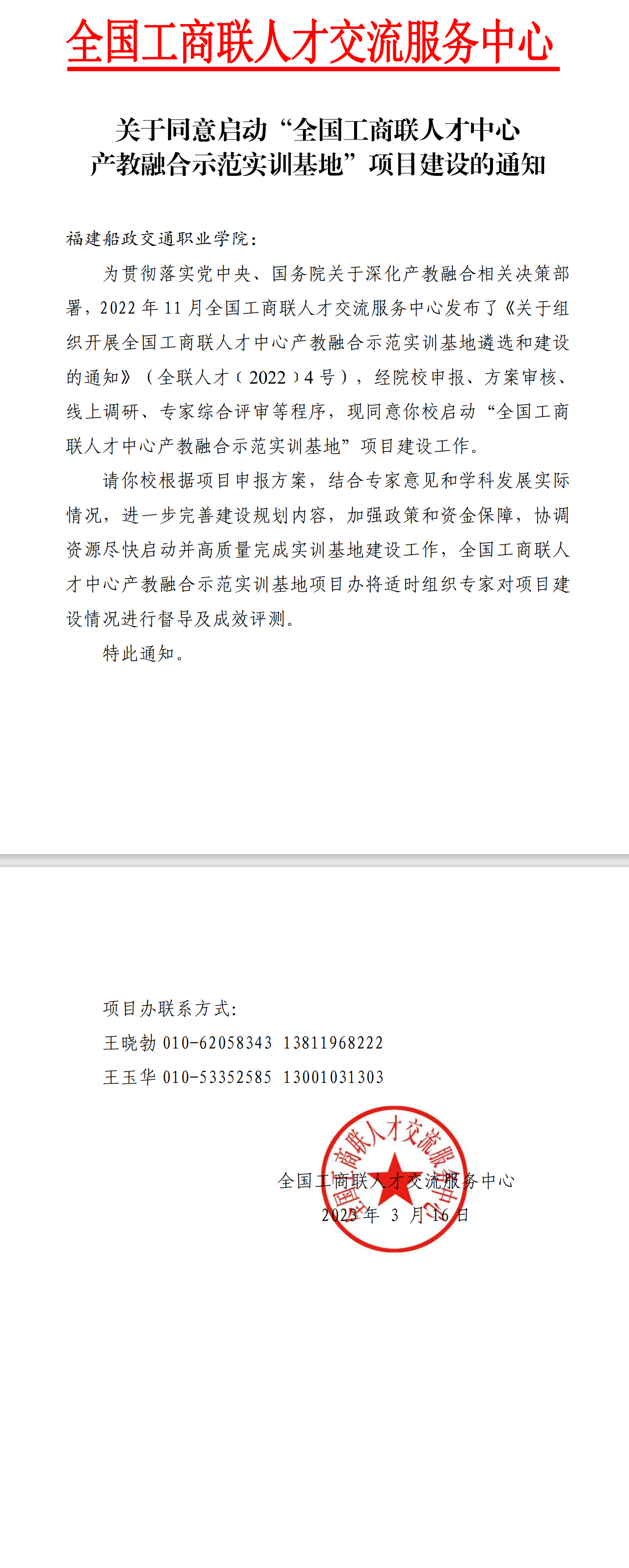近日,全國工商聯(lián)人才交流服務中心下發(fā)《關于同意啟動“全國工商聯(lián)人才中心產教融合示范實訓基地”項目建設的通知》文件,我院成功入選首批“全國工商聯(lián)人才中心產教融合示范實訓基地”。