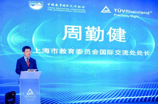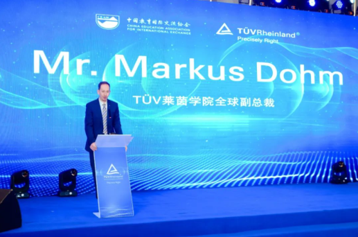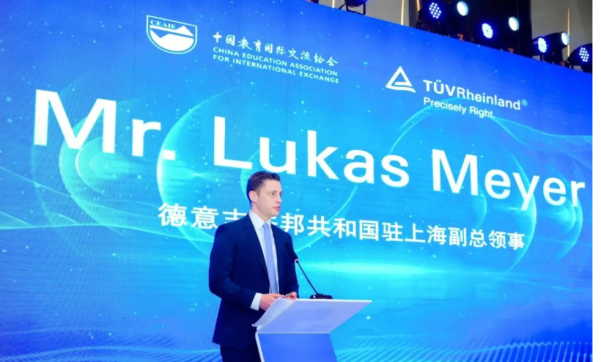 中國(guó)教育國(guó)際交流協(xié)會(huì)副秘書(shū)長(zhǎng)余有根、德國(guó)駐上海副總領(lǐng)事盧永勝(Lukas Meyer)、上海市教育委員會(huì)國(guó)際交流處處長(zhǎng)周勤健、TüV萊茵學(xué)院與生命關(guān)懷全球執(zhí)行副總裁Markus Dohm、TüV萊茵學(xué)院大中華區(qū)副總裁林小霞先后在啟動(dòng)儀式上致辭。