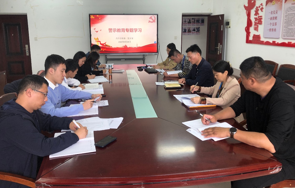 為深入學習貫徹黨的二十大精神,強化教師黨員干部廉潔從政從教意識,推進黨風廉政建設和作風建設,近日,汽車學院各支部在“五一”“端午”節(jié)假日前夕開展了“以案為鑒”廉政警示專題教育學習會。