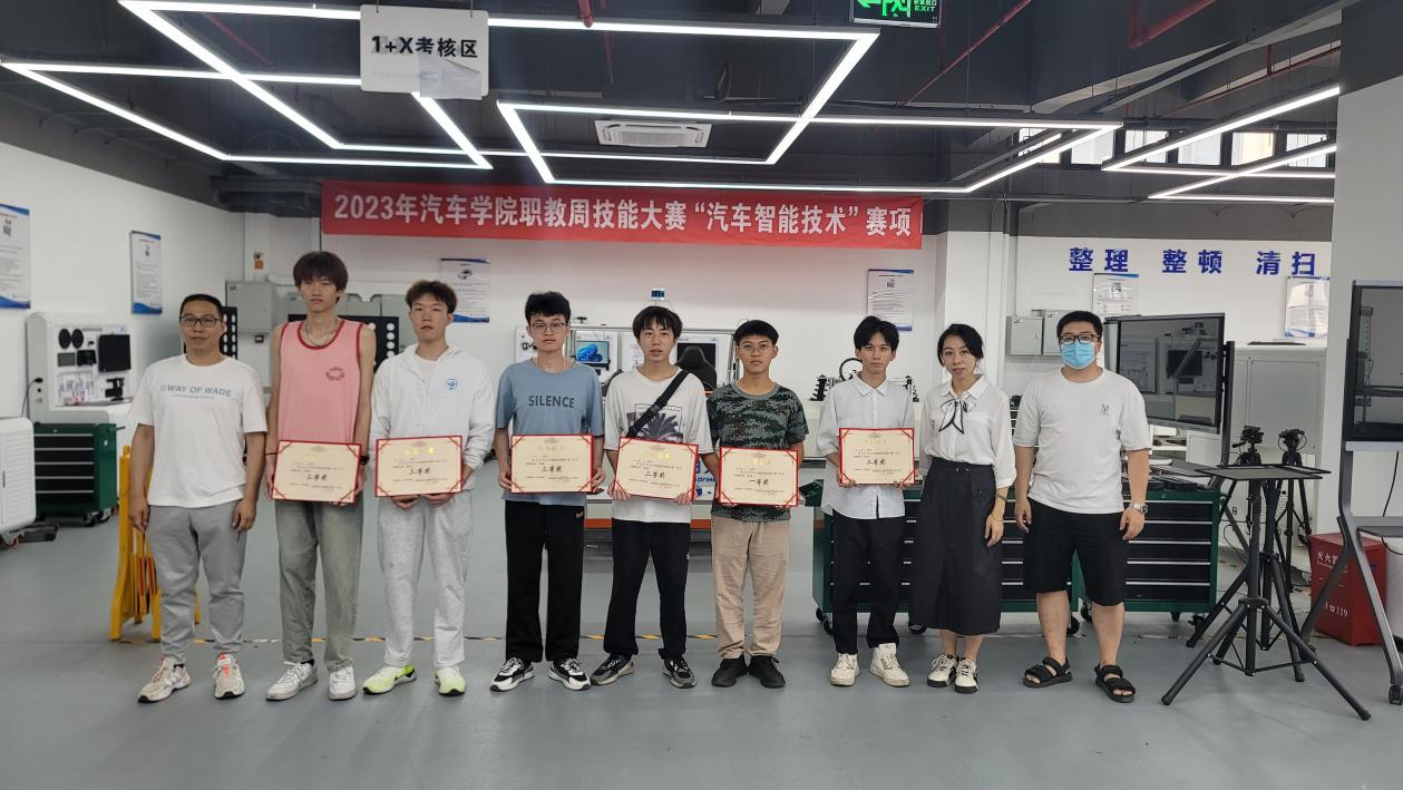 汽車智能技術(shù)專業(yè)教師為此次賽項(xiàng)得獎(jiǎng)的同學(xué)頒獎(jiǎng)