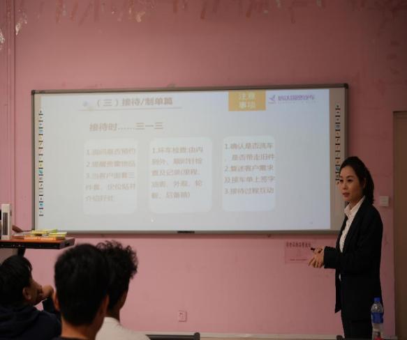 此次講座邀請(qǐng)了廈門信達(dá)國貿(mào)汽車集團(tuán)有限公司金牌培訓(xùn)師林燕玲女士。林燕玲女士為同學(xué)們就如何做好汽車售后服務(wù)崗位的職場(chǎng)規(guī)劃進(jìn)行指導(dǎo),同時(shí)講授了汽車銷售技巧、汽車前臺(tái)接待等方面的內(nèi)容,通過此次講座,學(xué)生們得以全面了解4S店的運(yùn)營模式以及銷售、接待、維修、保養(yǎng)等各個(gè)環(huán)節(jié)的基本知識(shí)與接待技巧。