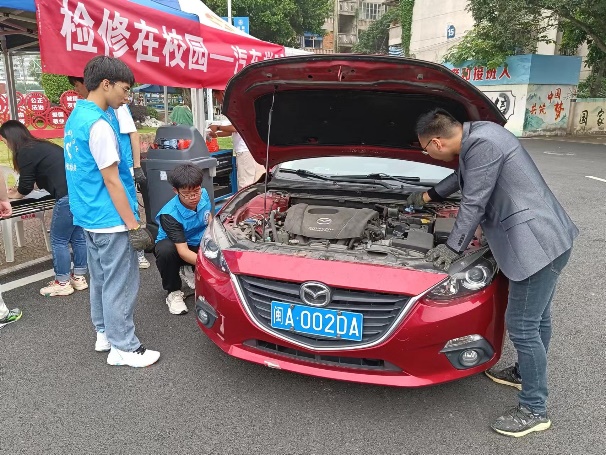 在現(xiàn)場職業(yè)技能服務(wù)社會(huì)環(huán)節(jié),汽車學(xué)院實(shí)訓(xùn)老師帶領(lǐng)學(xué)生為教職員工免費(fèi)進(jìn)行汽車空調(diào)保養(yǎng)和汽車修理等實(shí)踐操作,鍛煉了學(xué)生們的實(shí)踐技能、團(tuán)隊(duì)協(xié)作和服務(wù)社會(huì)的能力。