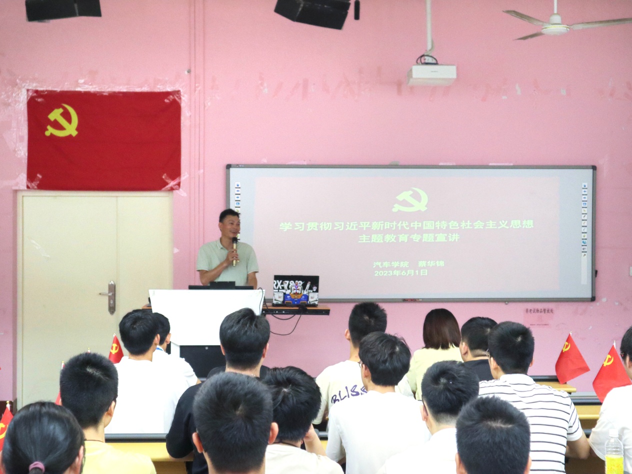 為了深入學(xué)習(xí)貫徹習(xí)近平新時(shí)代中國(guó)特色社會(huì)主義思想,進(jìn)一步推動(dòng)開展學(xué)習(xí)貫徹習(xí)近平新時(shí)代中國(guó)特色社會(huì)主義思想主題教育在學(xué)院走深做實(shí), 2023年6月1日,汽車學(xué)院黨總支蔡華錦書記在自強(qiáng)樓1-3教室開展學(xué)習(xí)貫徹習(xí)近平新時(shí)代中國(guó)特色社會(huì)主義思想主題教育宣講會(huì)。輔導(dǎo)員、全體學(xué)生黨員參加宣講會(huì)。