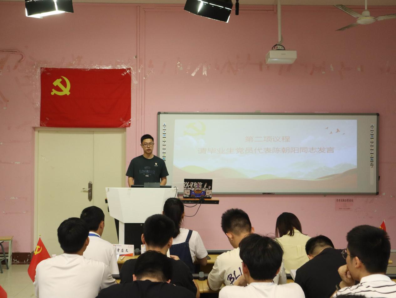 會(huì)上,畢業(yè)生黨員陳朝陽同志分享了自己的入黨歷程,暢談入黨以來的感受和體會(huì),用樸實(shí)的語言講述自己對(duì)黨的感情,感謝學(xué)校和老師的培養(yǎng),并承諾畢業(yè)之后依舊會(huì)自覺遵守黨紀(jì)黨規(guī),發(fā)揮黨員先鋒作用,不忘初心,牢記職責(zé)使命,繼續(xù)在工作崗位中為人民服務(wù)。