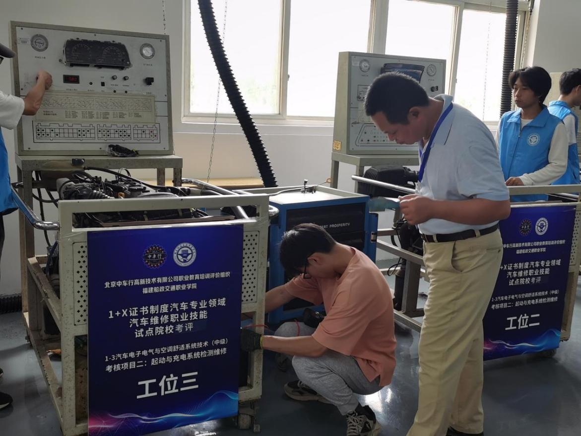 2023年6月25日,福建船政交通職業(yè)學院“1+X汽車運用與維修”職業(yè)技能等級證書(中級)考核工作圓滿結(jié)束。此次考核4個項目分別在豐田實訓室、吉利實訓室和發(fā)動機電控實訓室進行。我院汽車檢測與維修技術(shù)專業(yè)共有40名學生參加了“1+X汽車運用與維修”證書考核。